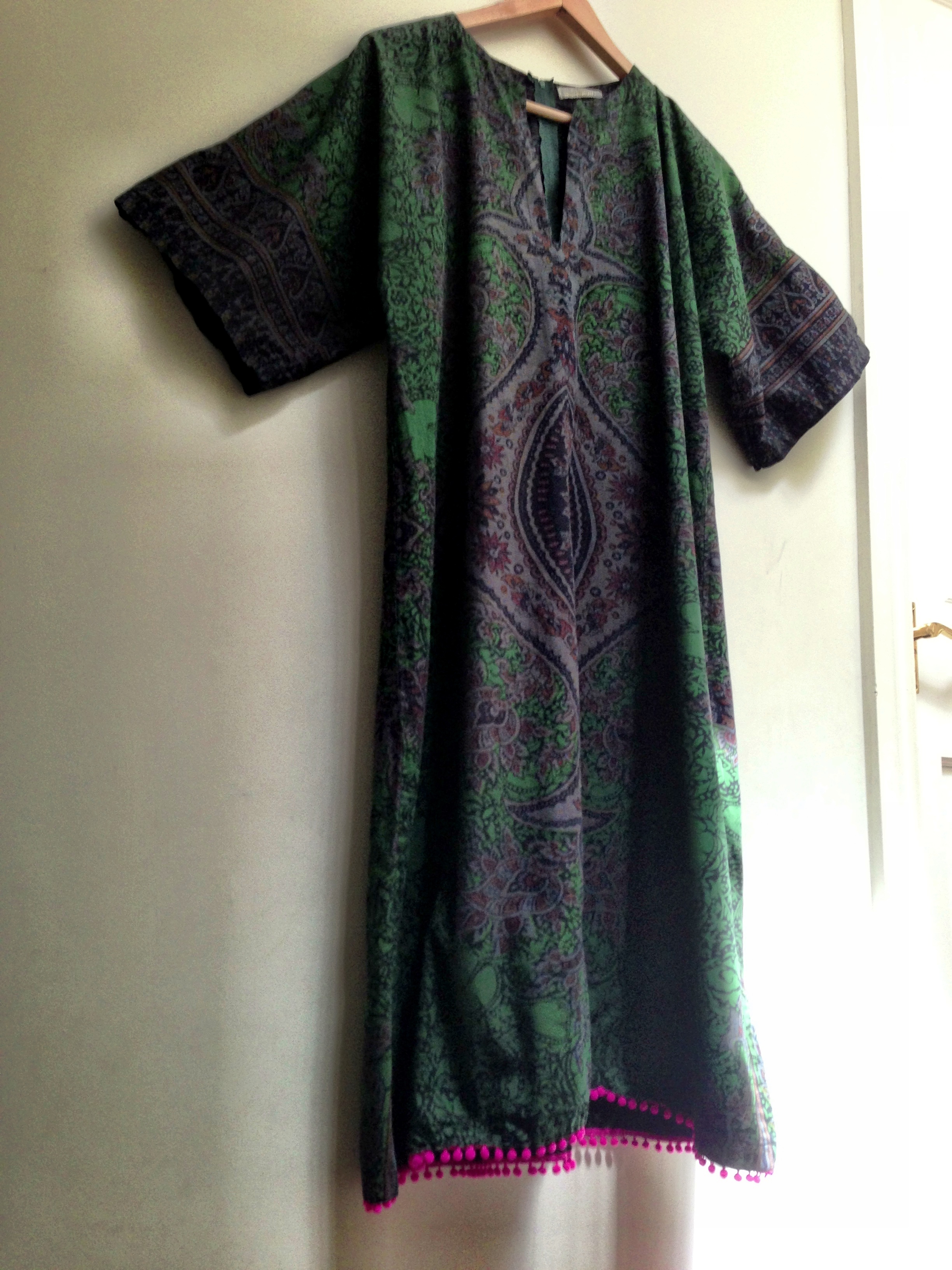 This one was originally 80’s purple, but it got a dose of brown dye and now it’s a wonderful burnt aubergine colour. It’s silk so does crease, but it’s worth it with a pair of gold sandals..