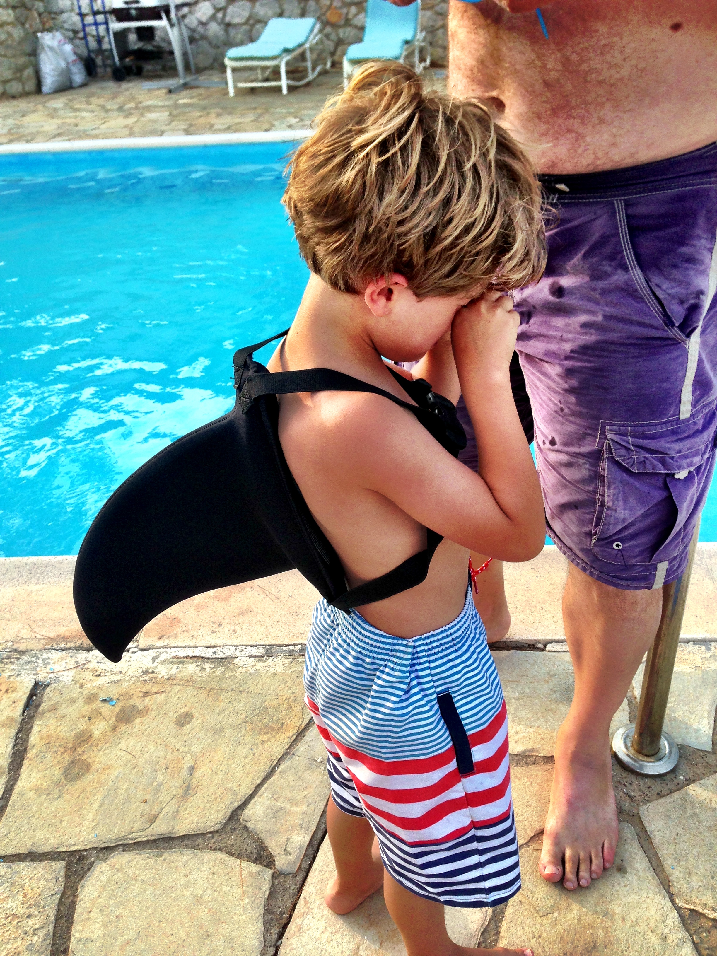 I think his shark fin will become cooler when he can swim with the monofin…until then…I tended to wear it the most to chase after them!! xxx