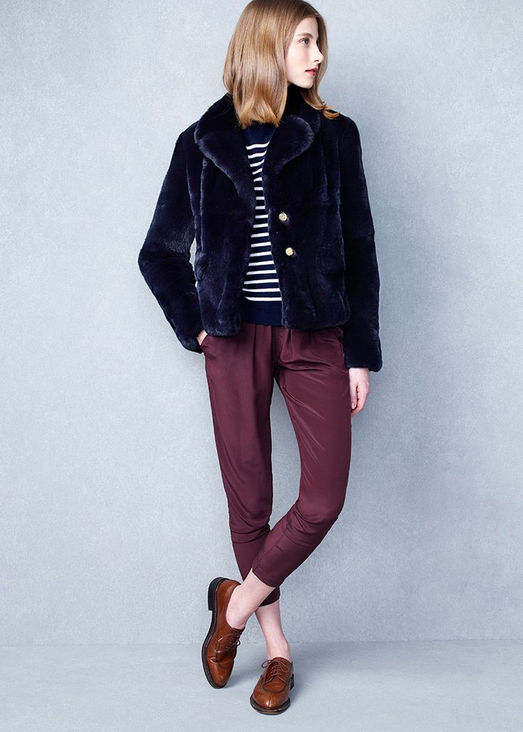 I’d like to cozy up in the lush navy fur jacket if it would ever get cold here!