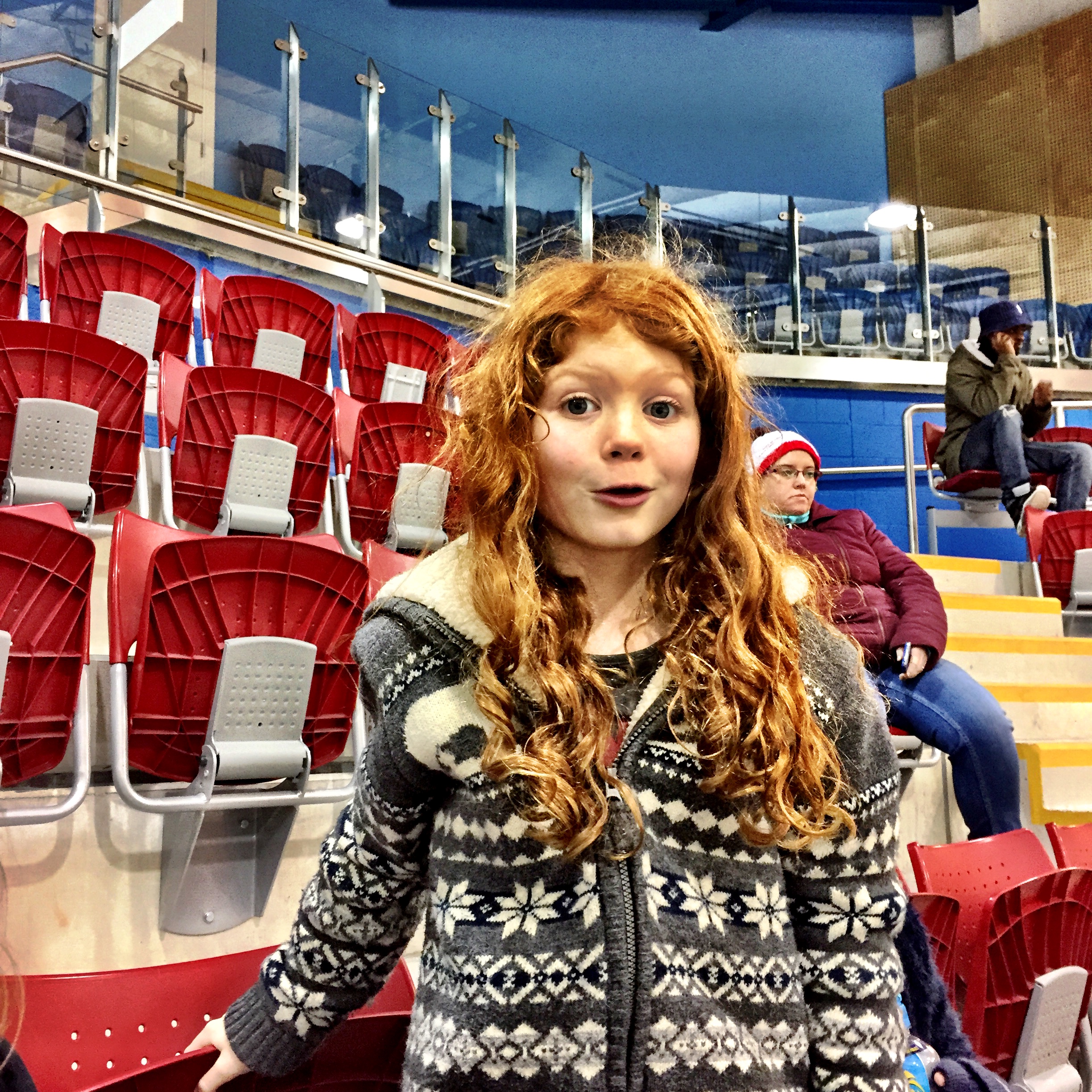 Bella with her best-bud…on Sunday we took them to Streatham ice rink (where both girls have lessons) to see my lovely, multi-talented friend Kaori Okumura from the Blog, Twist and Turn play in an ice hockey match with her team, Storm..