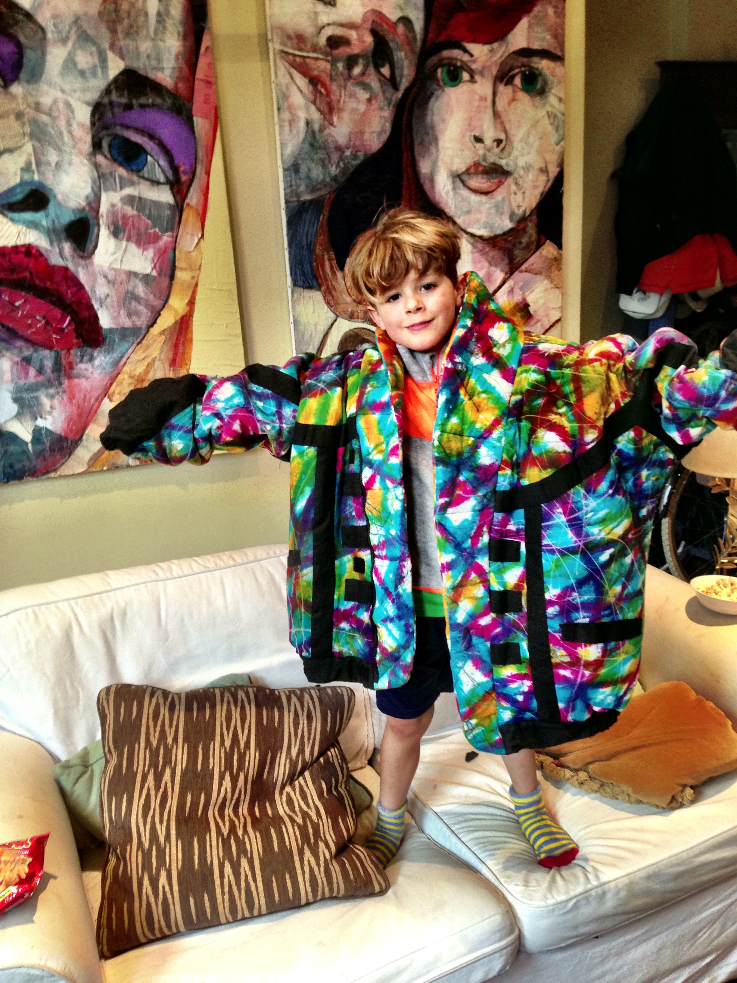 Well done Kate! This hits a couple of soft spots: 80s, shawl collar, DYI dyeing (which I always wanted to try but never did), quilting – in short: a whole lot of puffy fabulousness!