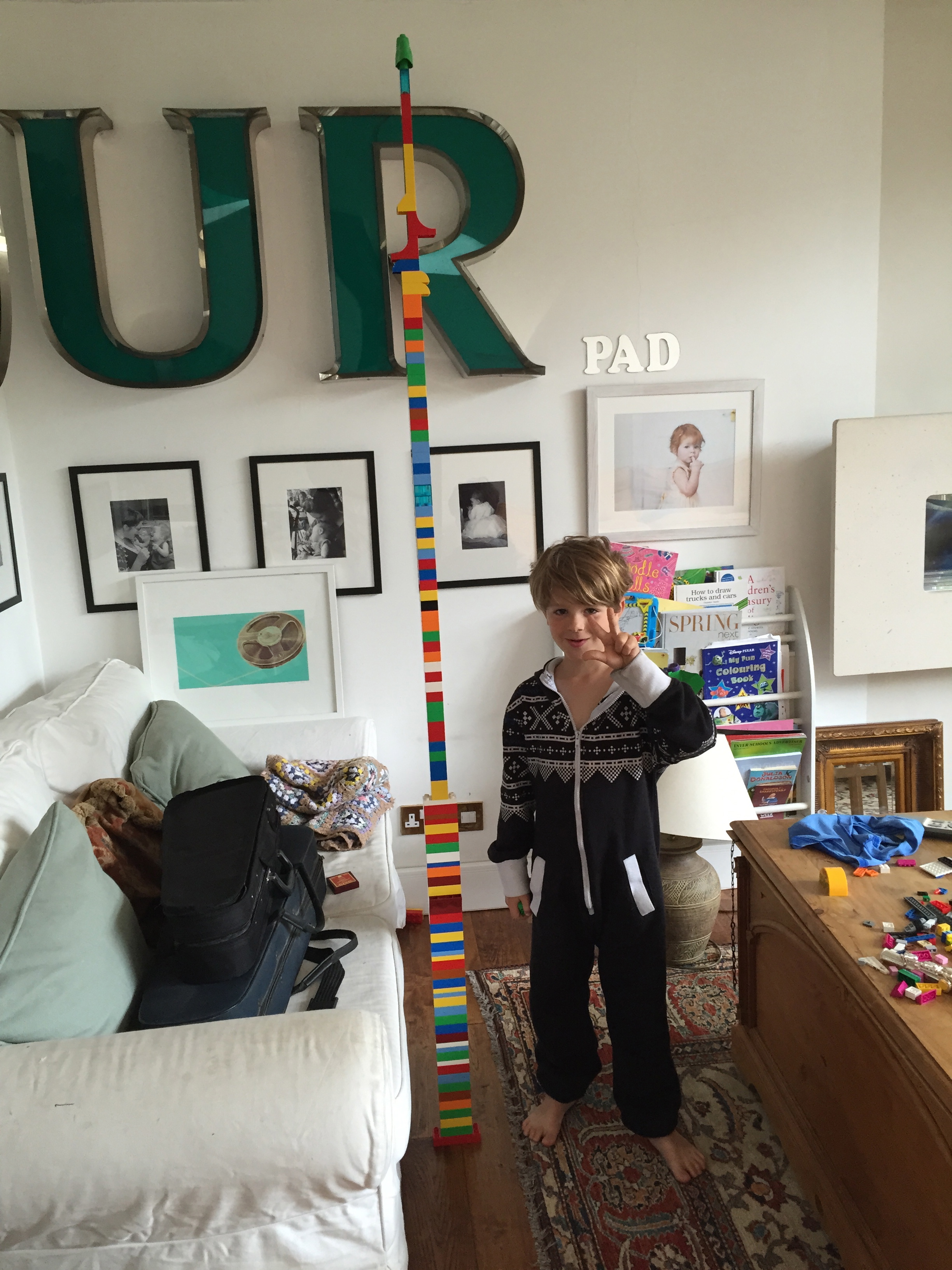 I love that tall lego model. Much better to stack them than treading on the nasty little pieces. And the new shoes are very cool indeed.