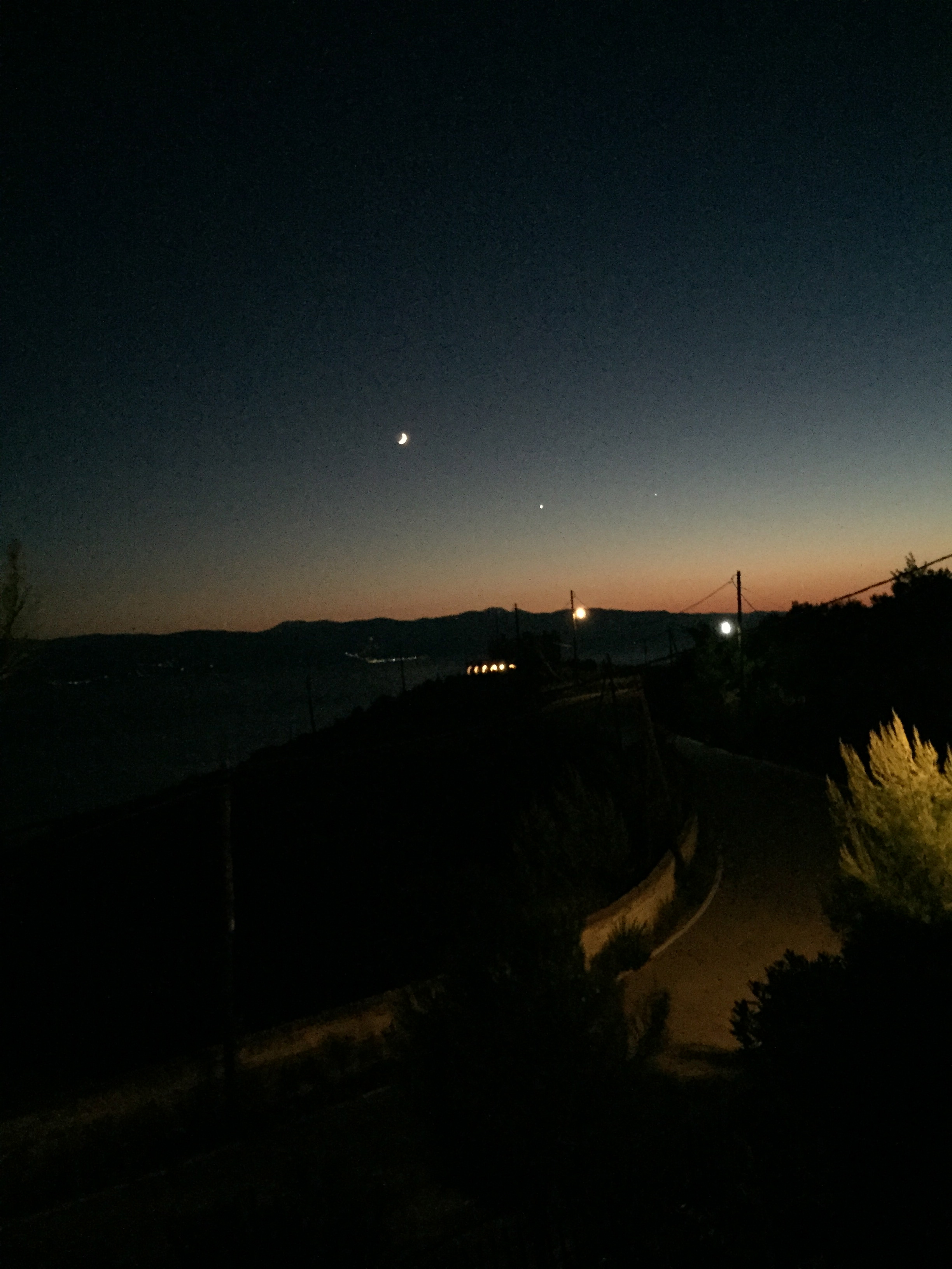 And when it does, the new moon appears..along with Venus and Jupiter.