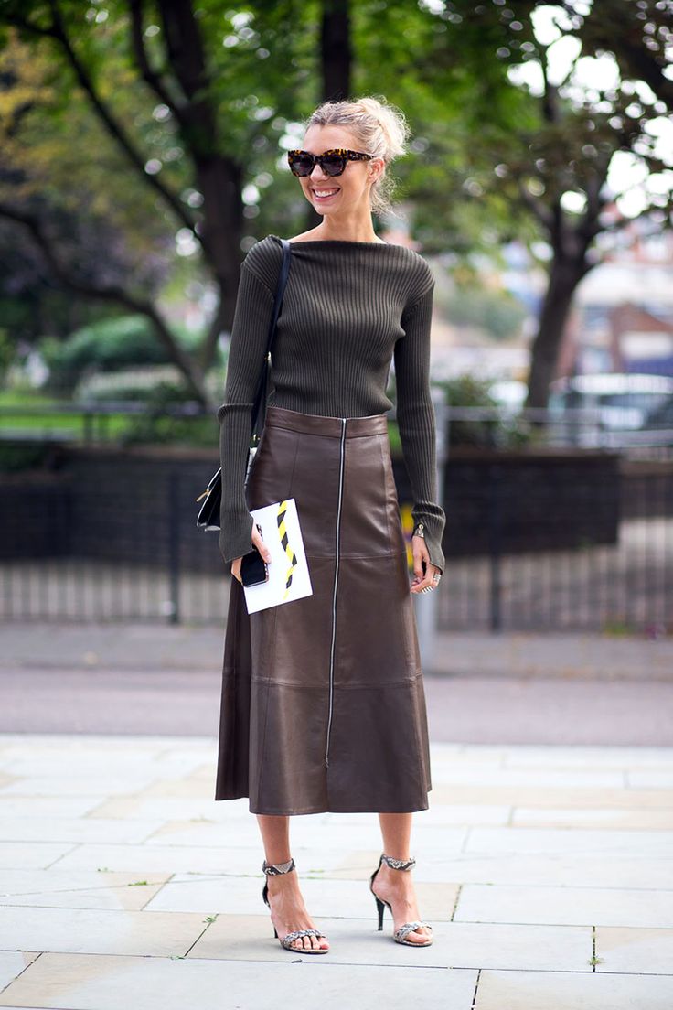 Street style is about the unexpected – the clothes might’ve existed before, but the combinations probably didn’t: large furry collar, vintage vitamin cardigan, pleated midi skirt and a bowling bag? It’s a cunning mix..