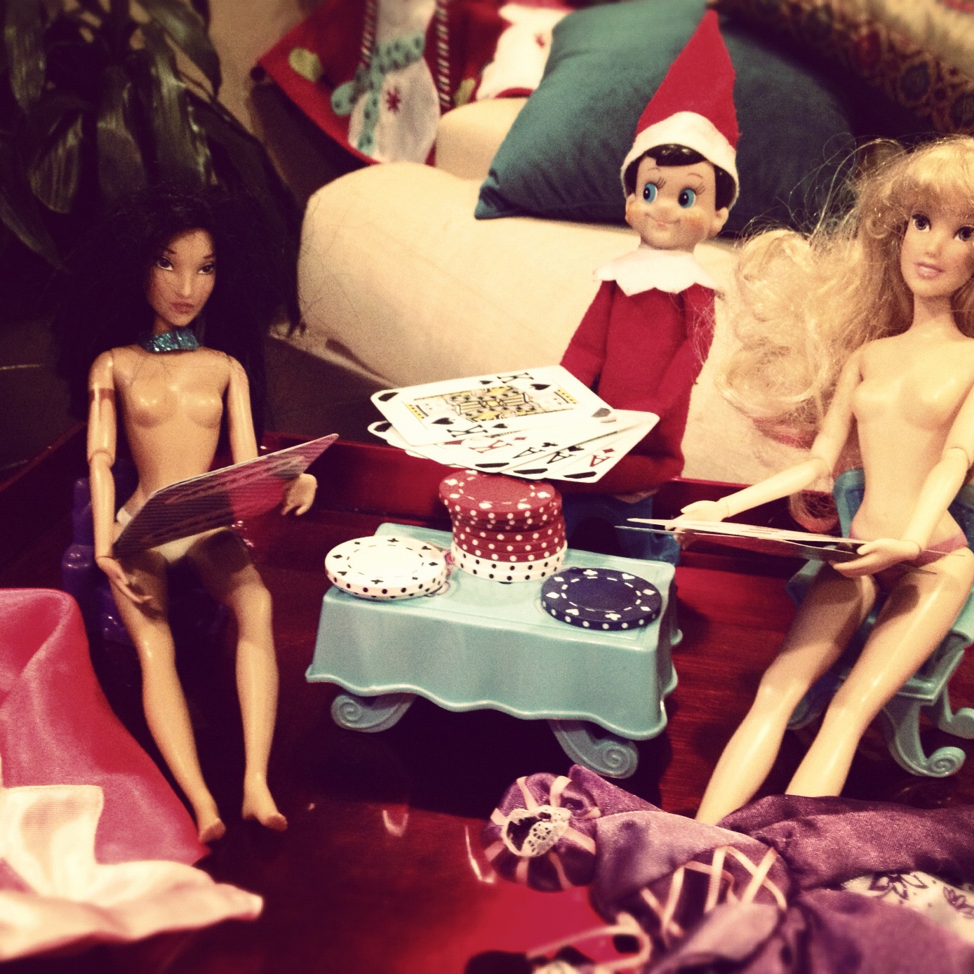 It’s the first of December (gulp) so our two elves on shelves, Jessie and Heinrik sorry – Pinkadou – he’s just been renamed by Charlie (‘Did you know Pinkadou is an old Italian name, Mummy??’ and there was I thinking it was made up. Silly, silly) have made their first appearance. Spotted them?