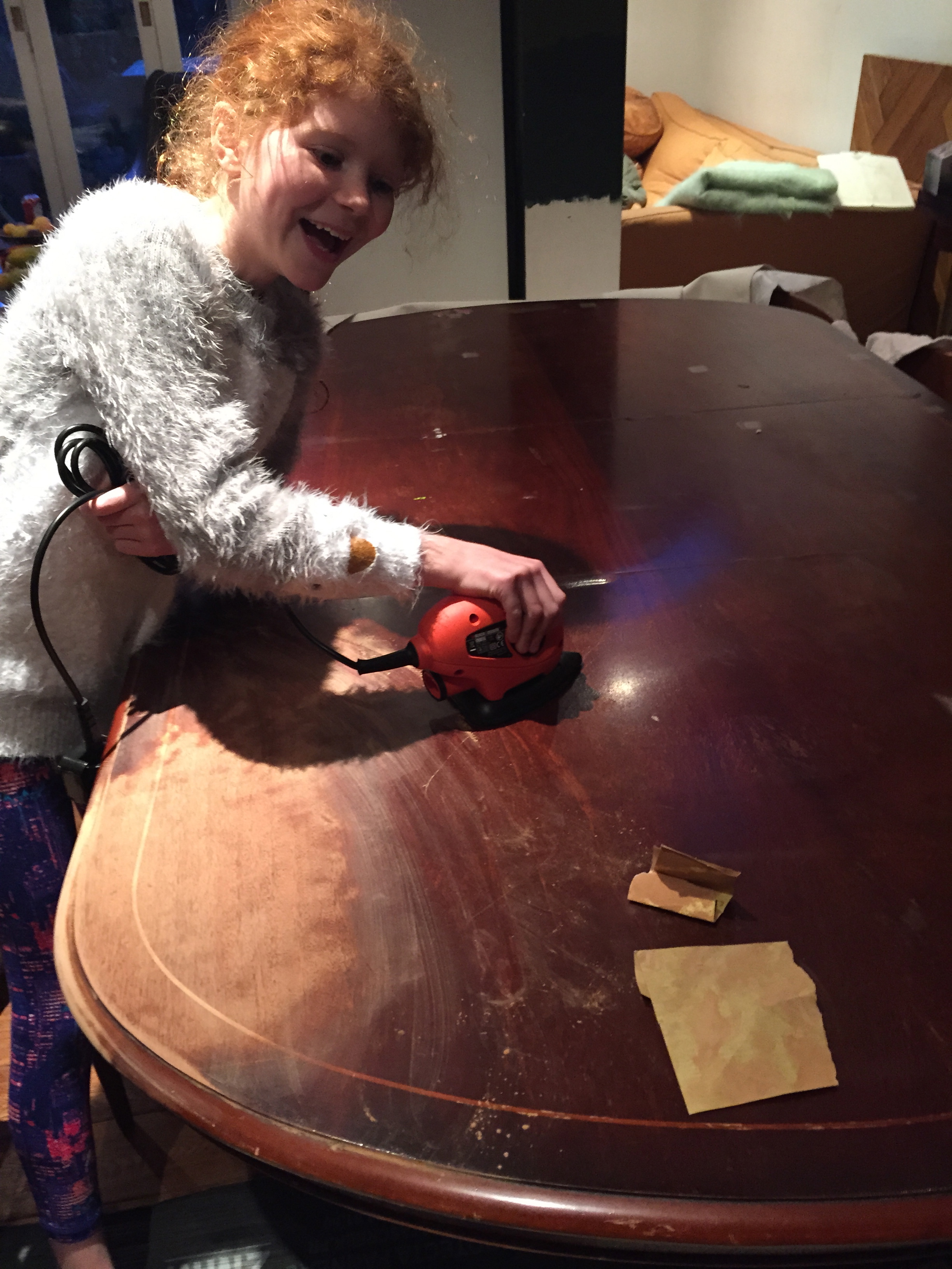 By the end we looked like 2 orange oompa lumpa’s, but thankfully the table looked fab – I already prefer it…though I have no idea what to do as the next stage….oil? Wax? I know I don’t want the shiny red again..I want to knock back the red if at all possible, but not entirely sure what to do?….any suggestions very gratefully received…