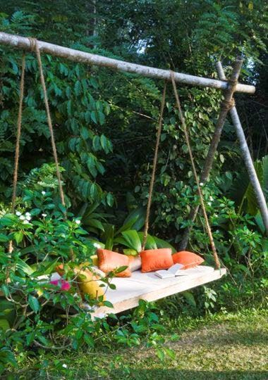 This is probably more realistic – and I like the pagoda style..a bit more secretive and tucked away. Maybe with a curtain to block out nosey neighbours…and with a back support – I hate reading completely flat. It would eat the space…but in a rather wonderful way. The truth is we have an urban life: Our garden will never be a football pitch…so why pretend?
