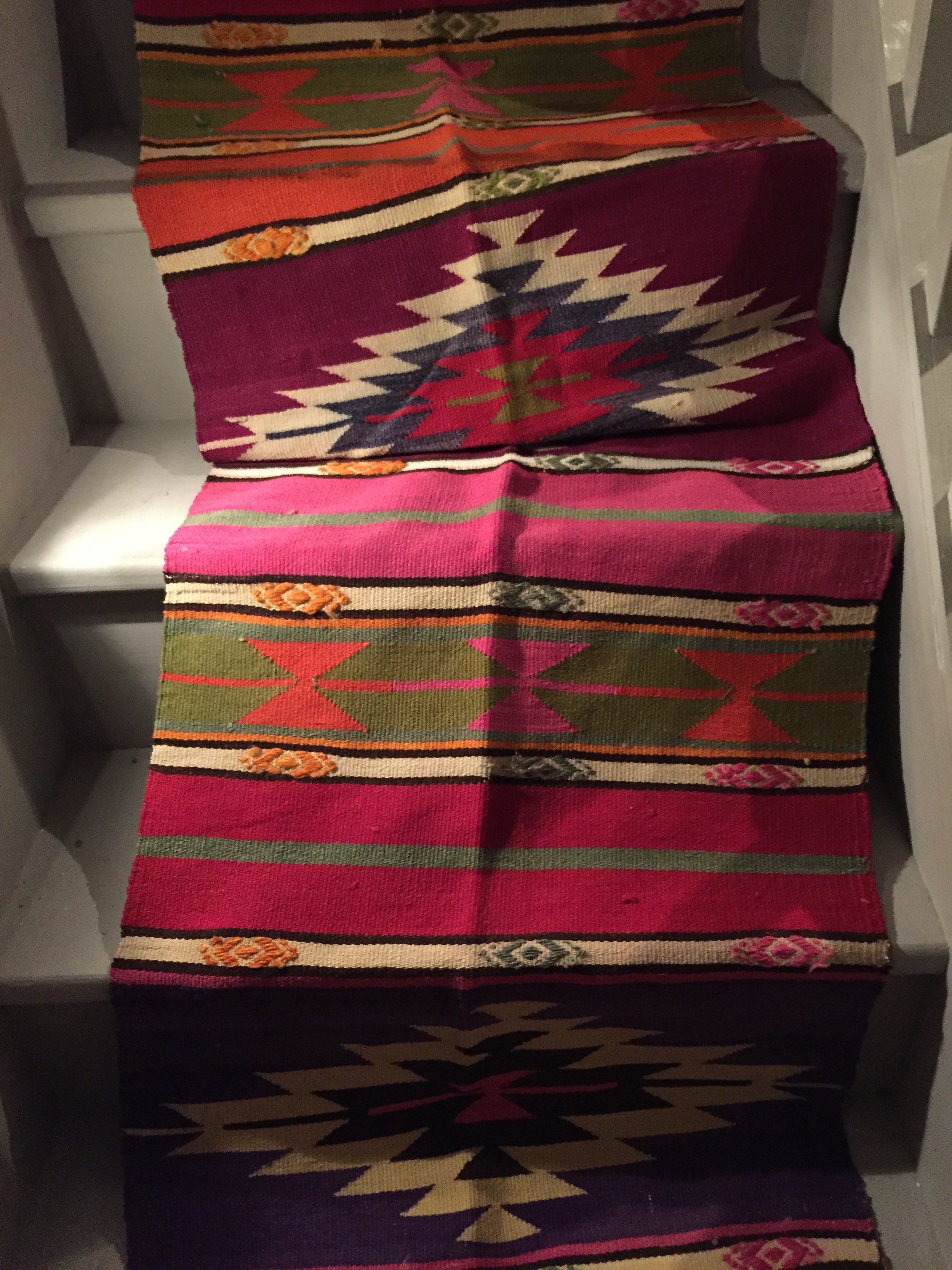 I’ve been trying to source some as runners for our main stairs and cellar stairs. It hasn’t been easy: No runner is long enough and narrow enough to fit a complete flight, so it’s about finding combinations that work together, fit together in size….and still make the heart sing.