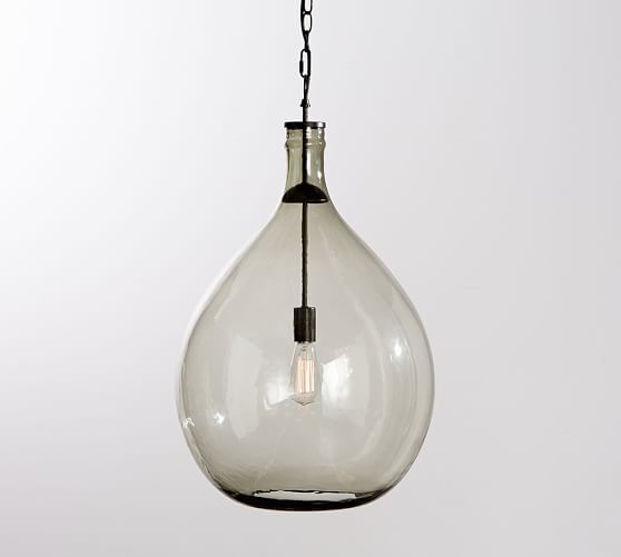 Or inside a large eye-filling glass pendant: Three in a row over a kitchen island unit…heaven.