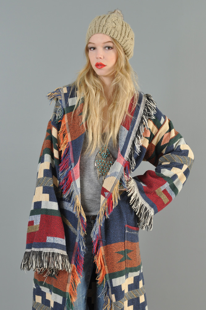 Which triggered, I suspect a sense of strong desire when I first found all these pictures of vintage Navajo blanket coats on Ebay last February? Anyway..some time ago and I fell in lust…