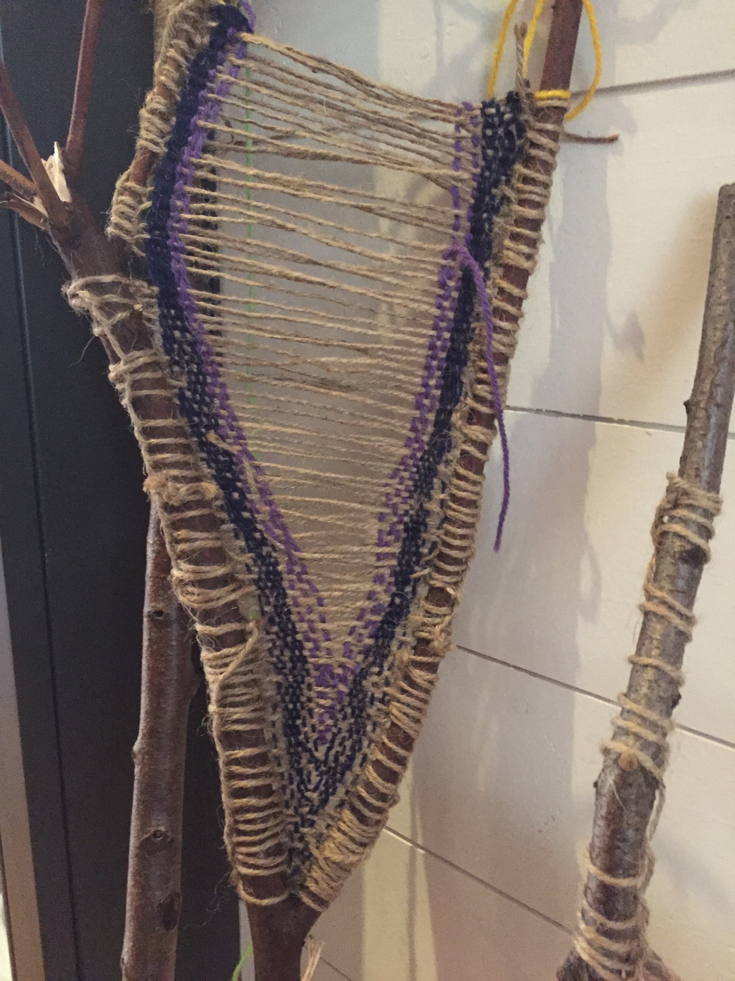Finally weave wool in V shapes vertically from one side to the next. This is Bella’s finished creation.
