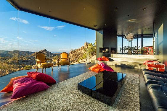 The opposite of expectation for a house in the desert, the darkness offers an almost dreamlike quality as it both sits within the landscape but also underlines it’s difference. This is beauty distilled to it’s most appealing concentration, a thunderous quiet, brooding contrast to the celebration of nature.