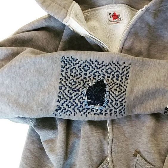 I love this; a functional marriage between the fragility of these crocheted leaves and the darning of these jumpers. The message being that old things can be treasured, worn things aren’t bad and that imagination is precious. These are all examples of Sashiko, a form of decorative reinforcement stitching from Japan, (though it also reminds me of Indian Kantha quilts). Every piece has been given some much needed love, transformed and given new life.