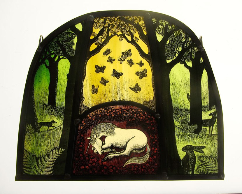 From the ridiculousness of my last post to the sublime: There are times when I see an artist, their work, their lifestyle and feel a pull, as if but for a sliding doors moment, I’m looking at a life I could’ve lived. This is the work of stained glass artist, Tamsin Abbott, inspired by the mystery of nature, folklore and fairytales.