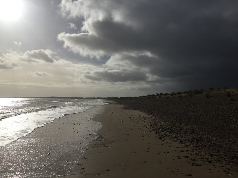 There’s something magical about walking along a beach in autumn when the clouds are skudding, the wind is cold and the sun is bright.