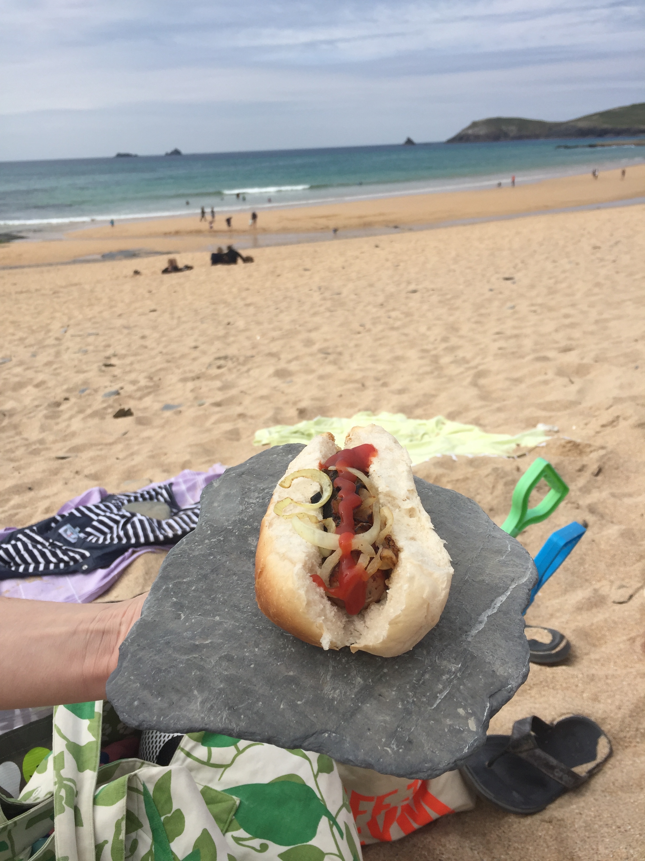 The perfect natural slate plate for the perfect hot dog: Barbie on Constantine Bay.