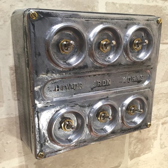 Like industrial cast aluminium light switches made from recycled alloy wheels.