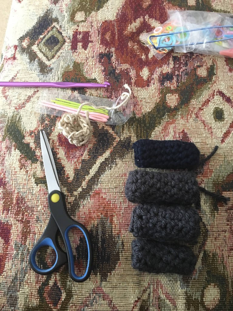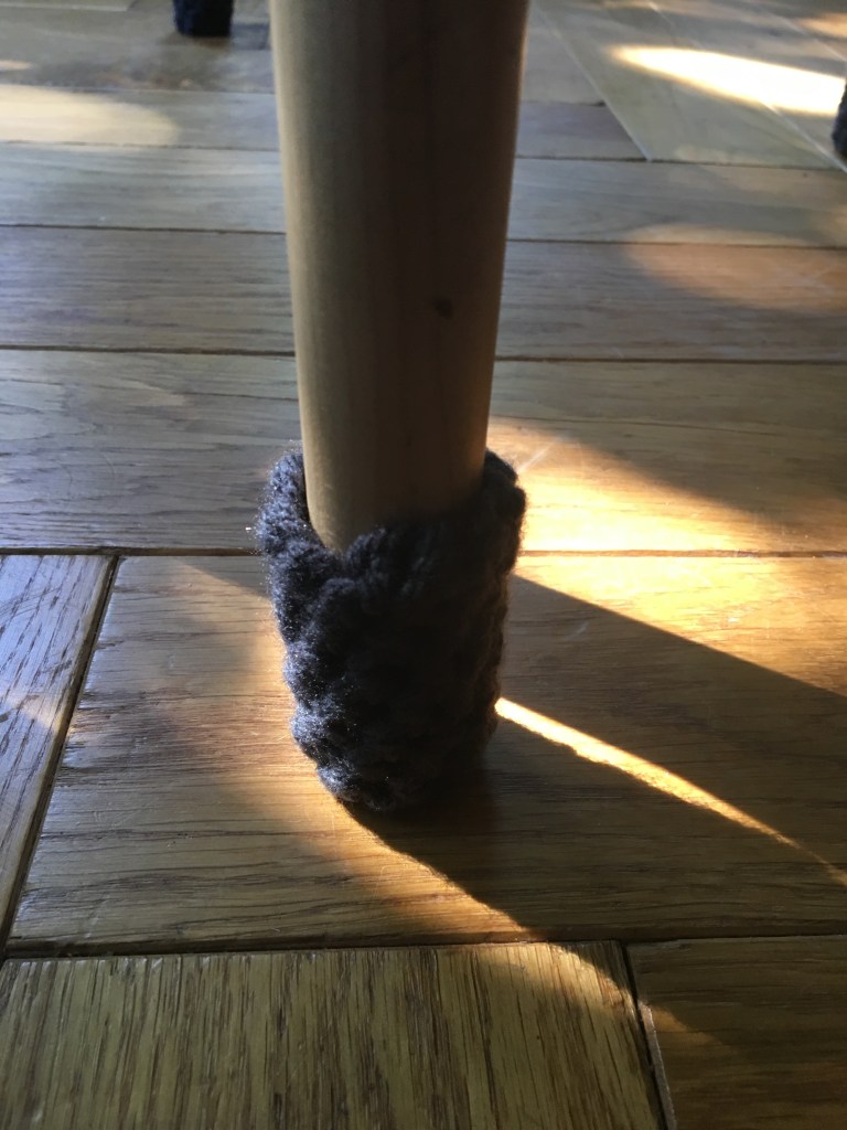 The crochet is going great guns, particularly as we’ve come up with the perfect project to encourage repetition, practise and ideal tension: We’re making what can only be called ‘little socks’ for my dining rooms chairs to replace those sticky pads that only work to gather dog hair.