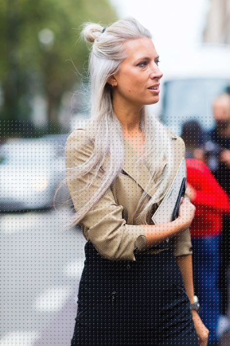 There was this post, about Sarah Harris, the Vogue editor who went grey at 16, who learnt to embrace her natural colour despite being called mad. And then grey became a thing. Peroxide’s been a thing for decades, you only have to think of Marilyn Monroe. But more often than not, it’s been associated with a polished, professional look and a fear of dark roots: Those that want to go blonde, want to convince they really are blondes – maybe they really do have more fun. There’s also issues with length – the unspoken rule that women of a certain age shouldn’t have long hair, like they don’t deserve it, that their hair no longer qualifies. But now there seems to be a change, a relaxing of stance, a recognition of merging grey with white, blonde with white, grey with blonde. And as for length…you only need to see the last pictures of Sarah Harris with her almost waist length, now almost white hair to know power in motion.