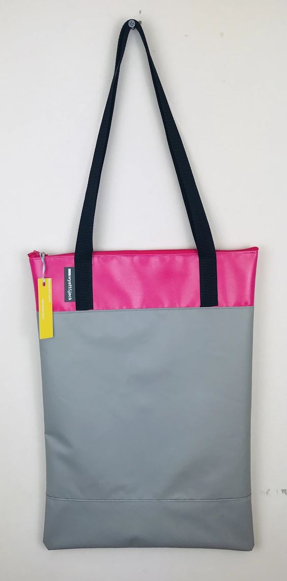 No metaphor represents the end of summer more than abandoned, once loved inflatables, lying discarded like an unwanted skins by over flowing bins, waiting to be hauled off to landfill. A couple of weeks pleasure in return for environmental chaos. But one man’s poison is another man’s pleasure – for Georgia Wyatt-Lovell and her husband, Steve Lovell this is the perfect raw material for their bags at Wyatt and Jack. From deckchairs in the big smoke, bouncy castles in the suburbs and lilos from the beaches, all are gathered together and given new life and new purpose.