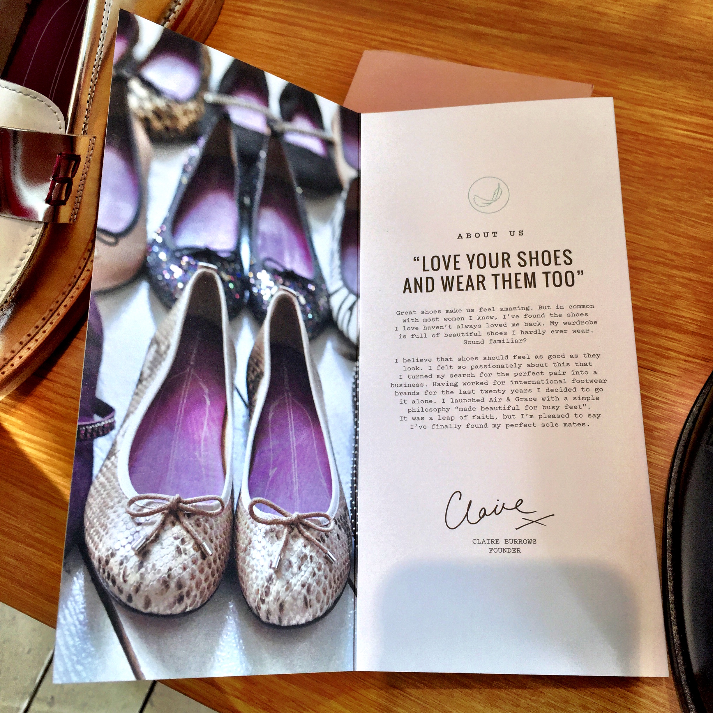Yesterday I went to see the lovely Claire from Air and Grace at her new pop-up store on the Kings Road to catch up on all her latest news and styles. Claire started her label after spotting a gap in the market – she wanted shoes made for women, designed by a woman who understood what we really want – the true concept of beauty: style and comfort. It’s that word comfort that gnaws at something primal..