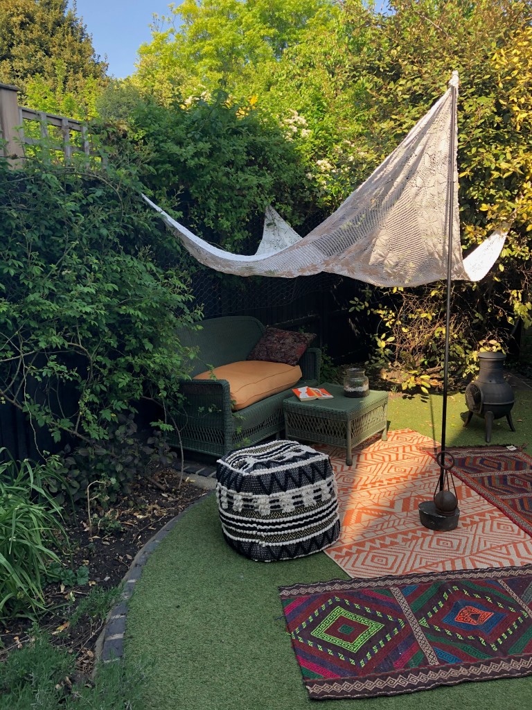 The overhang will be wide enough to contain a swing chair positioned to catch the last of the evening light. And if space allows, I would love a dramatic porch light.