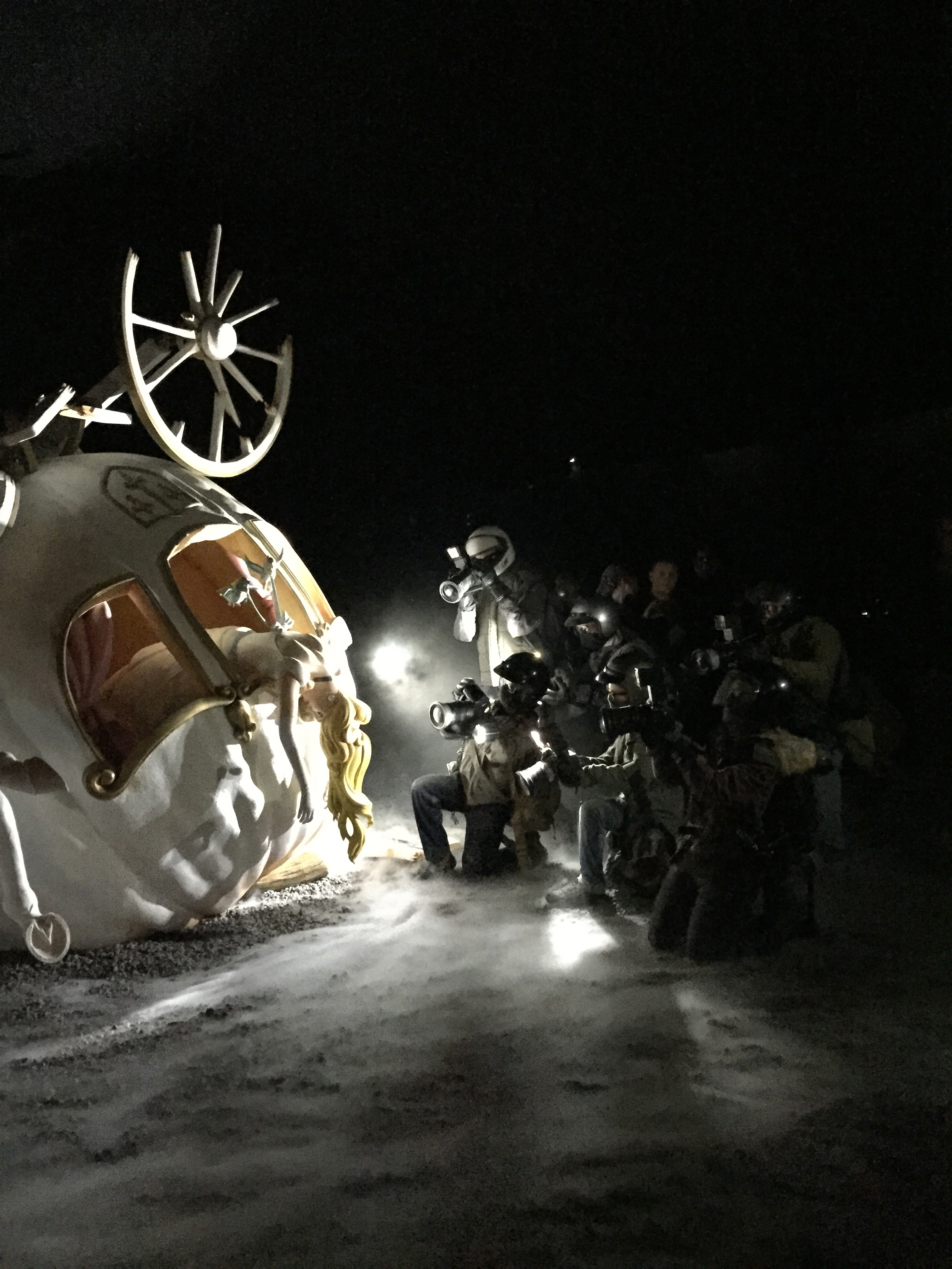 Through the darkness is the car-crash of Cinderella’s coach, her dying body illuminated by the flashes of pap’s cameras. We’re looking at them, looking at us..feeding us, feeding them..