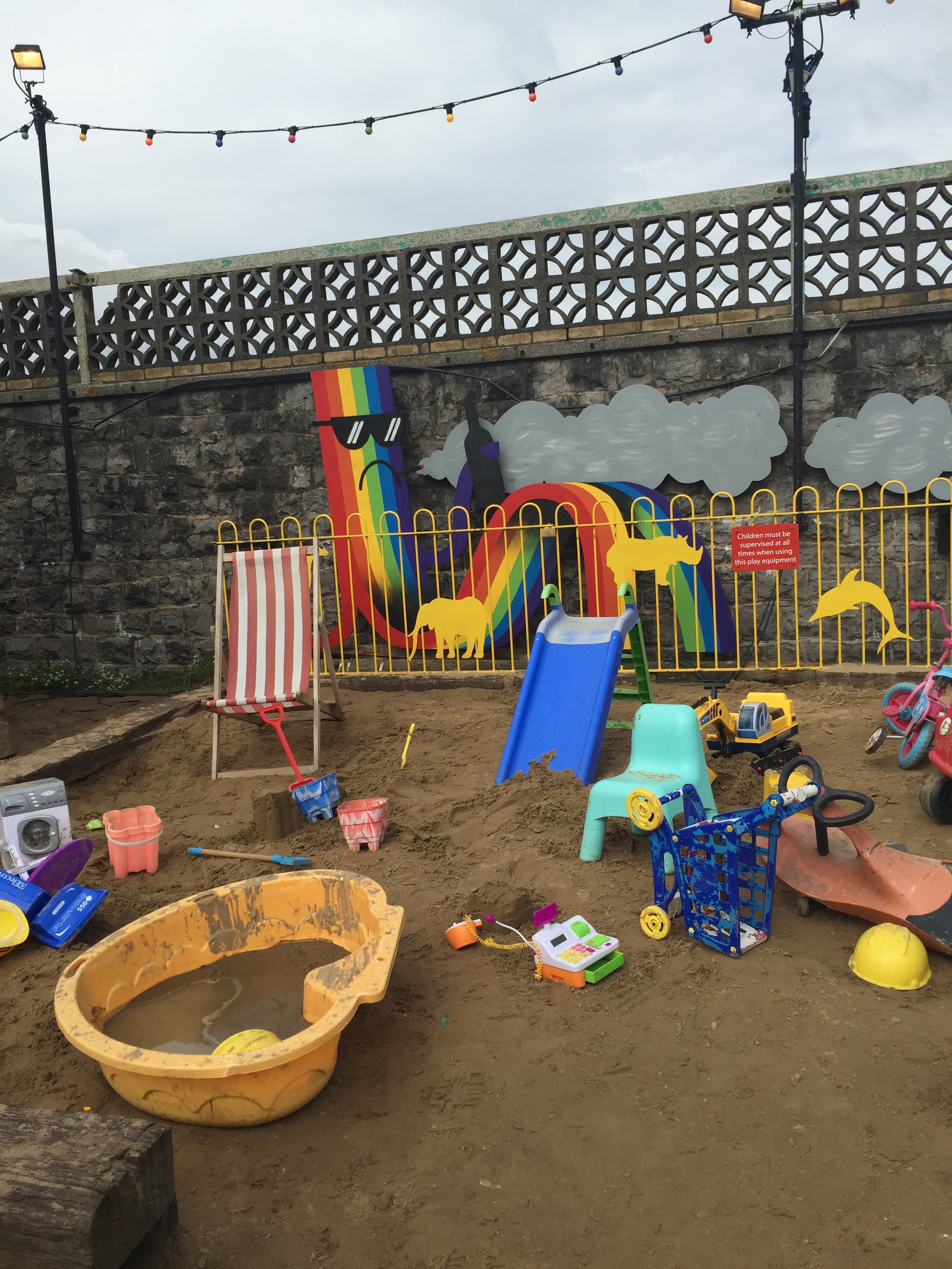 This isn’t a place for children despite there being works designed with them in mind..like the depressed, drunk Mr Rainbow puffing fumes over his tired playground..
