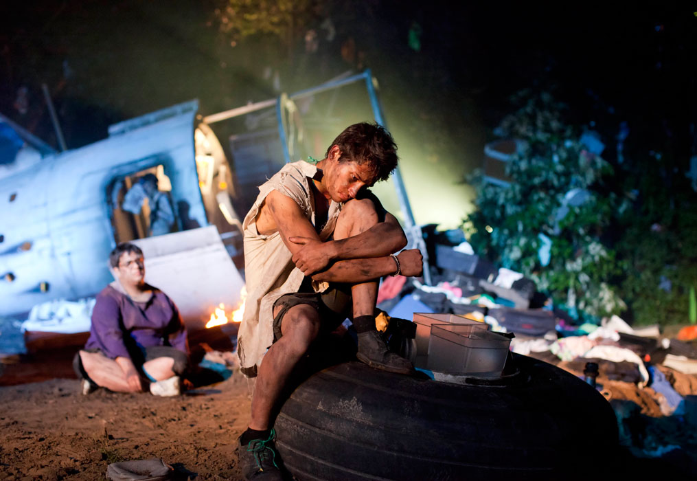On Friday I went to see the Brilliance that is Lord of the Flies at Regent’s Park Open Air Theatre. The story starts when the child survivors of a plane crash find themselves alone on a desert island. They have to come to terms with the enormity of what’s happened, enhanced by the genius stage settings of Director Timothy Sheader and Designer John Bausor. I mean..how awesome to walk into this? There’s a fleeting glimpse of friendship and paradise, before everything descends with gathering speed into a swirling, smoke-filled, fire-glowing hell hole of hate, malevolence and ominous spite.