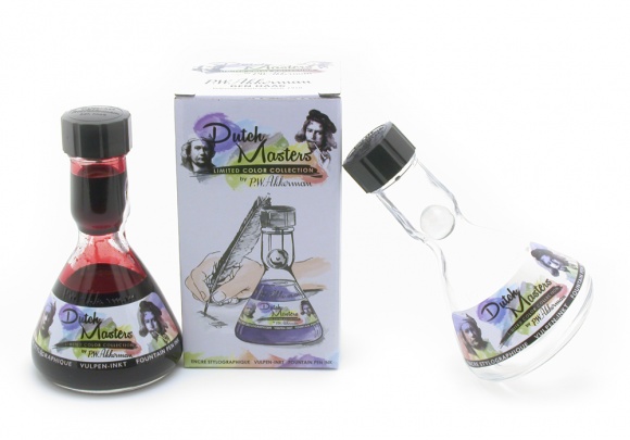 My ink of choice would be Akkerman, a Dutch company who’ve been making inks for over a hundred years. Their unique bottle originating from the 1930’s is poetry in motion – tilt the closed ink bottle and the neck fills itself up with ink. Placed the bottle on a flat surface again and the marble falls back in the neck to trap the ink creating a perfect reservoir – even when the pot is almost empty.