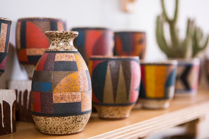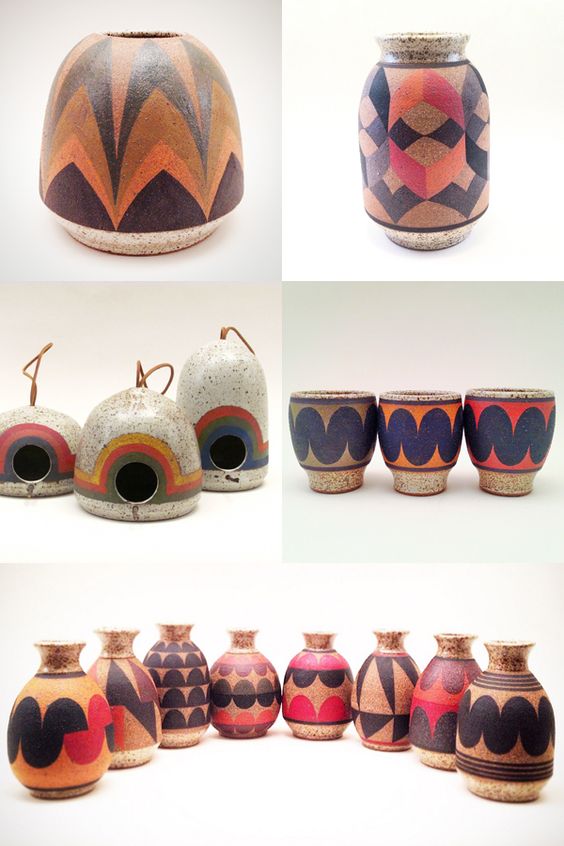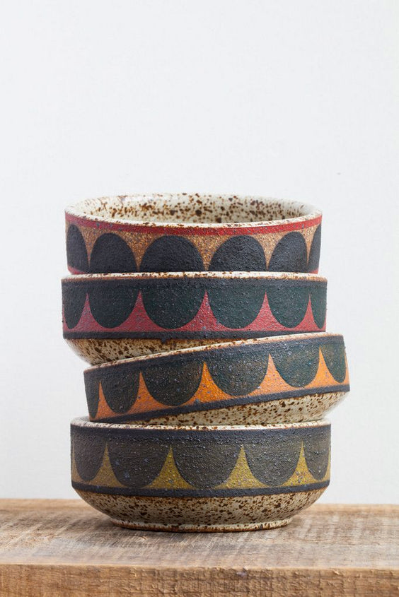 There’s a company that’s drawing from this feeling and adding their own signature: Kat Huffer and Roger Less, work partners and life partners based in Northeast Los Angeles make up Kat and Roger. Their aim is to combine classic shapes and graphic surface patterns with earthy natural clay textures.