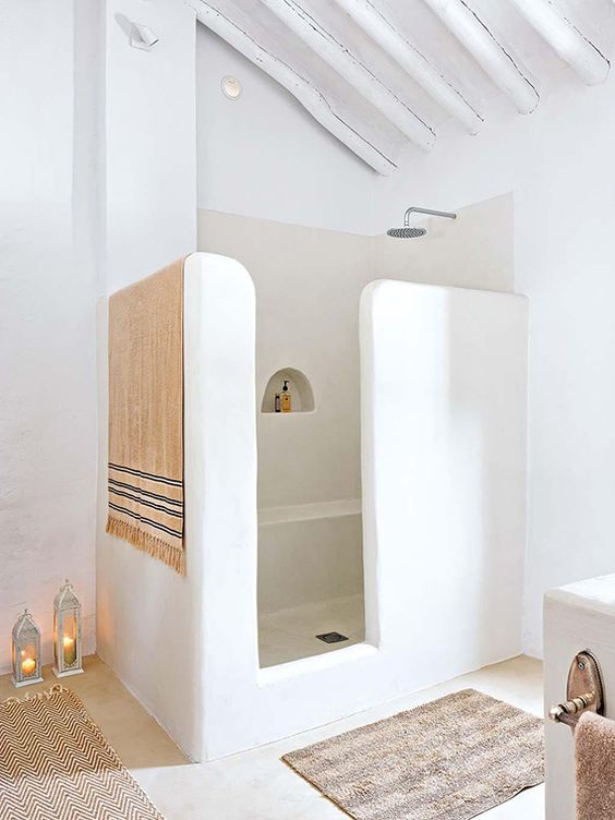 We should be in Greece now where one thing that is fundamentally different from the UK (apart from sun, sea, beach, food, music..life) is the bathrooms and in particular shower/trays walls which are made on site, in one piece away from any notions of hinges, doors and glass and their battle with limescale.