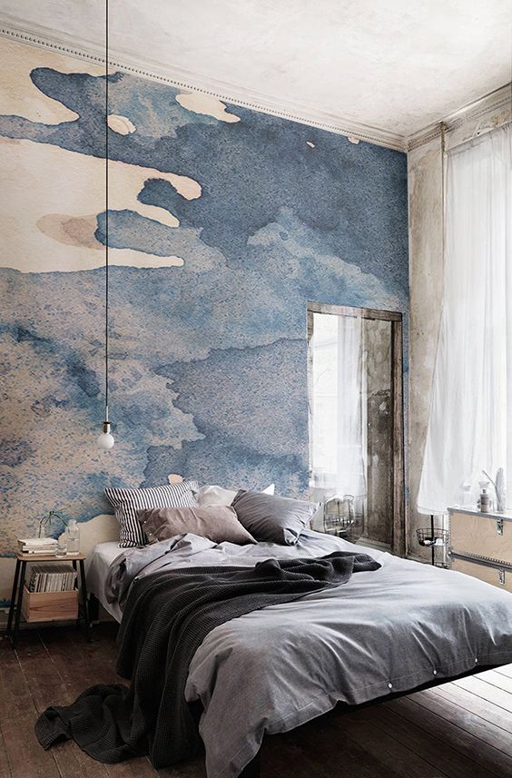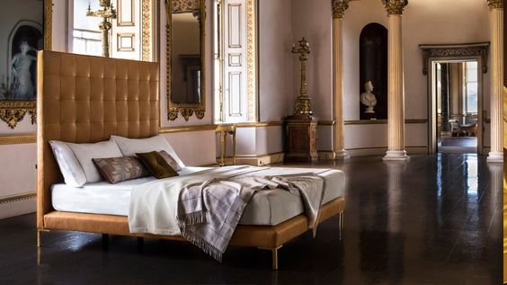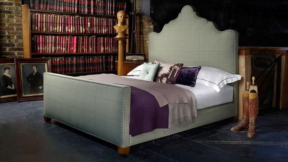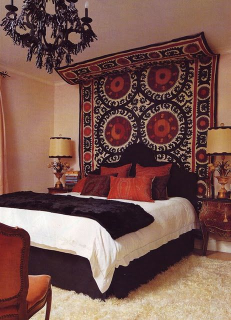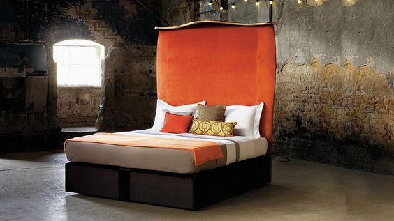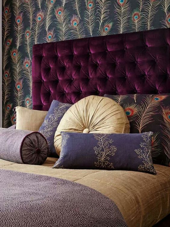 A bedroom with a statement bad that draws the eye and makes the heart beat faster with it’s come-to-bed loucheness..