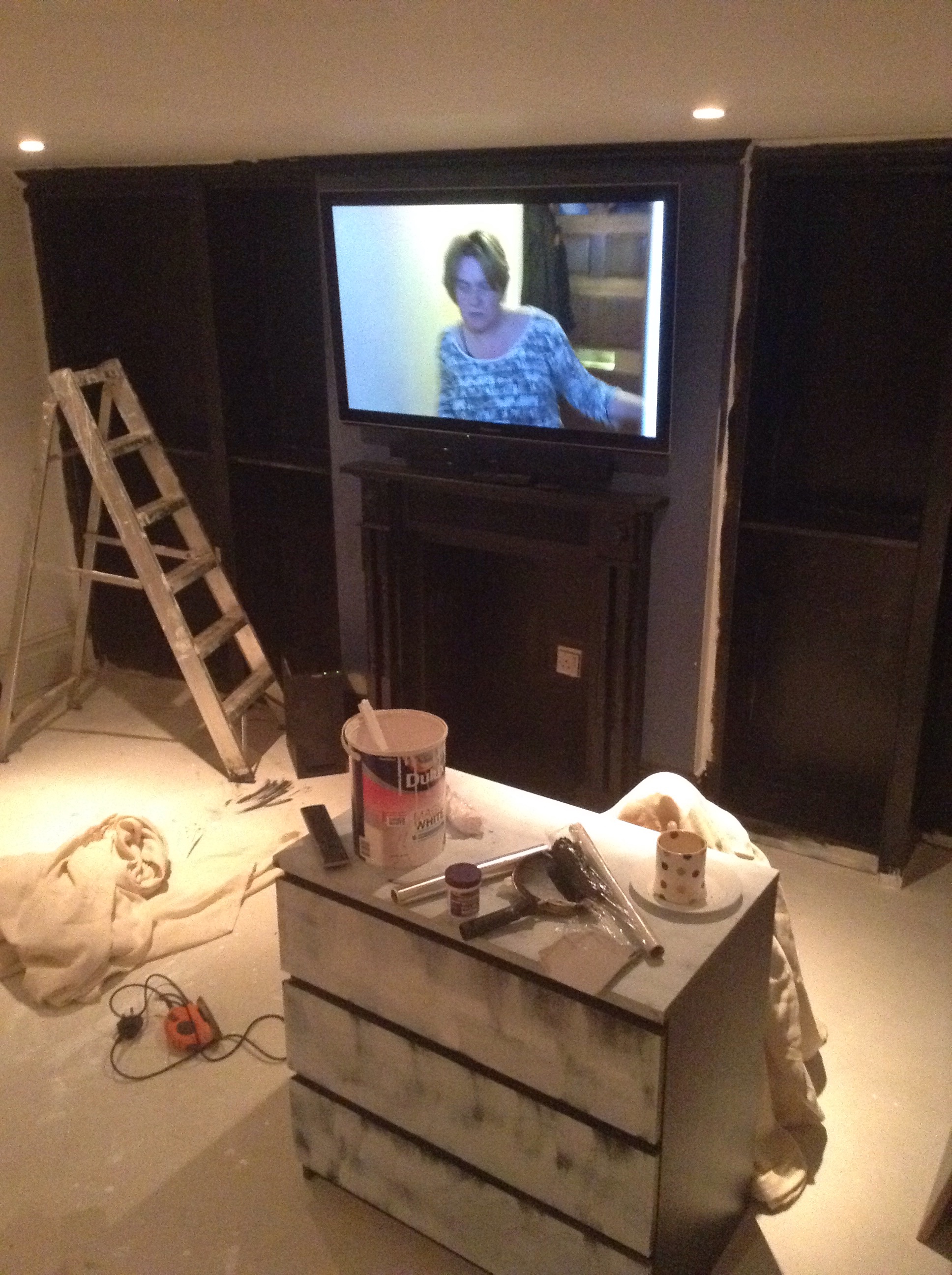 It’s the painful part of the cellar renovation…painting all the bookcases. Probably more so than usual because they started off black…and they’re going..off black. The reason is the shelving is an Ikea Billy hack – using basic Ikea units to look more than the sum of their parts – and that requires a layer of camouflage paint.