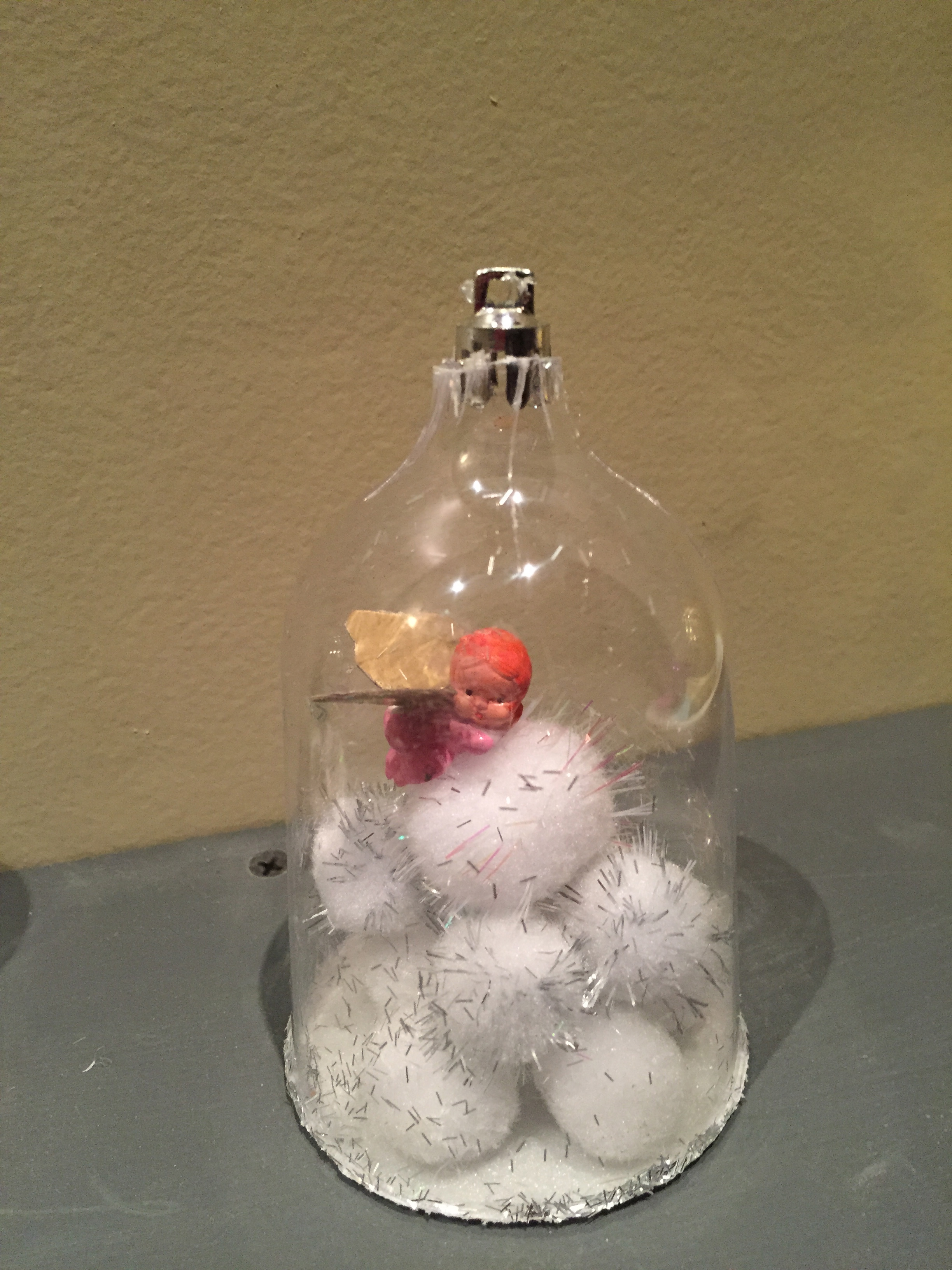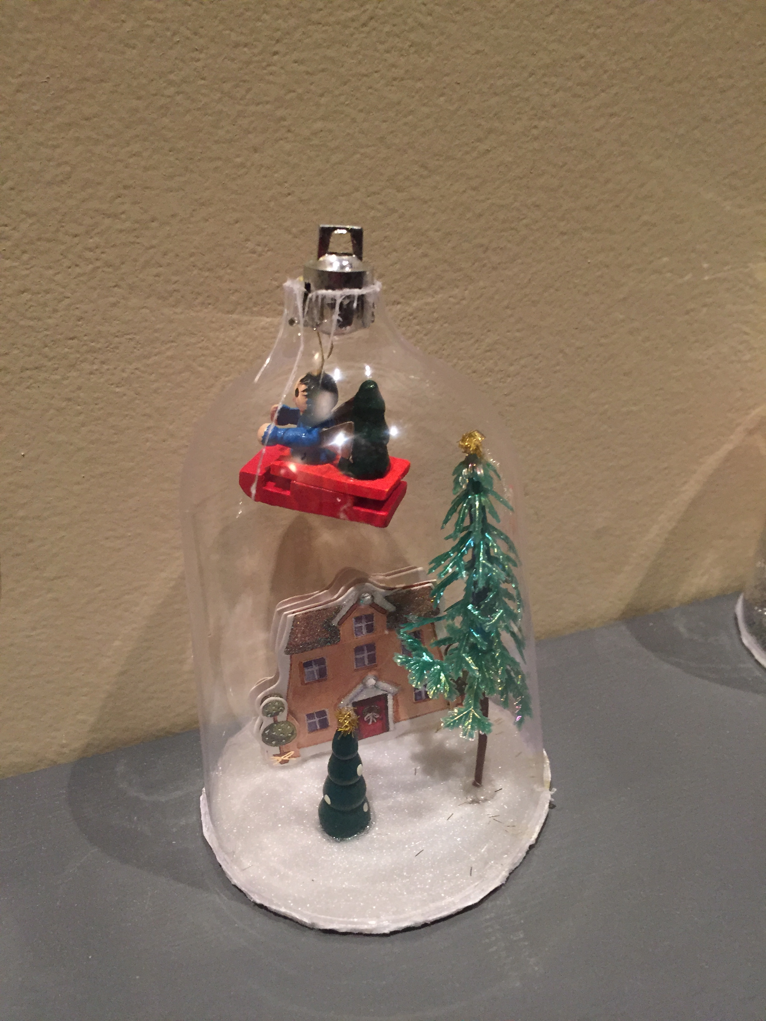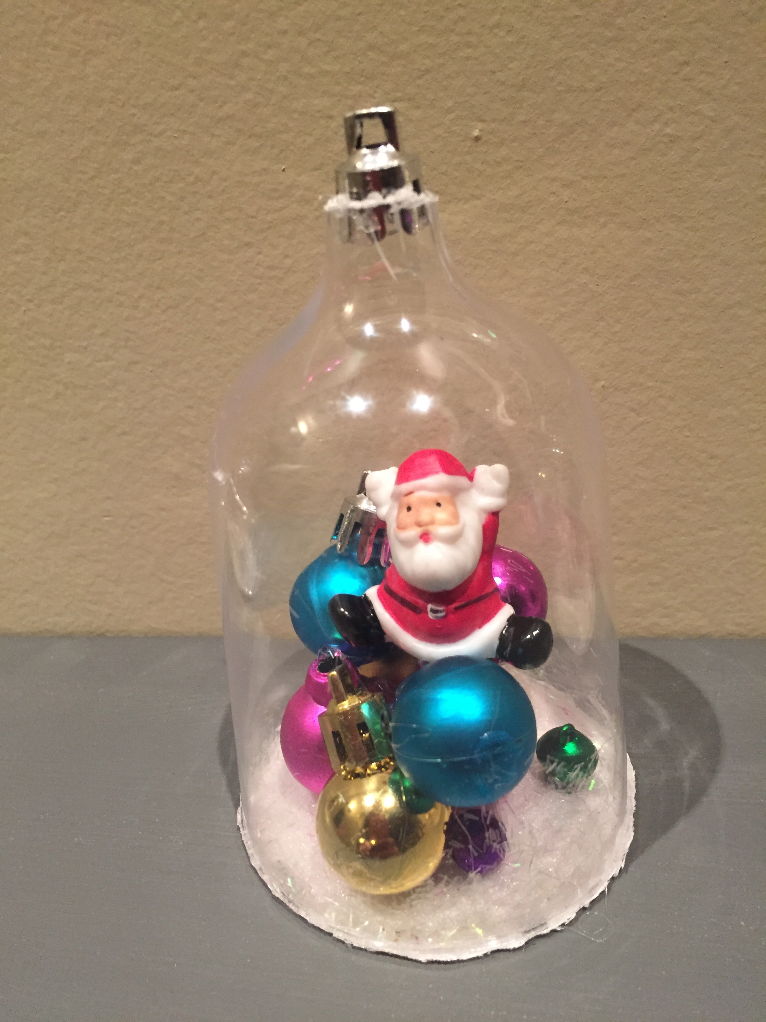 Finally they were topped and glued with the hanging part of an unwanted bauble and the bottoms trimmed off.
