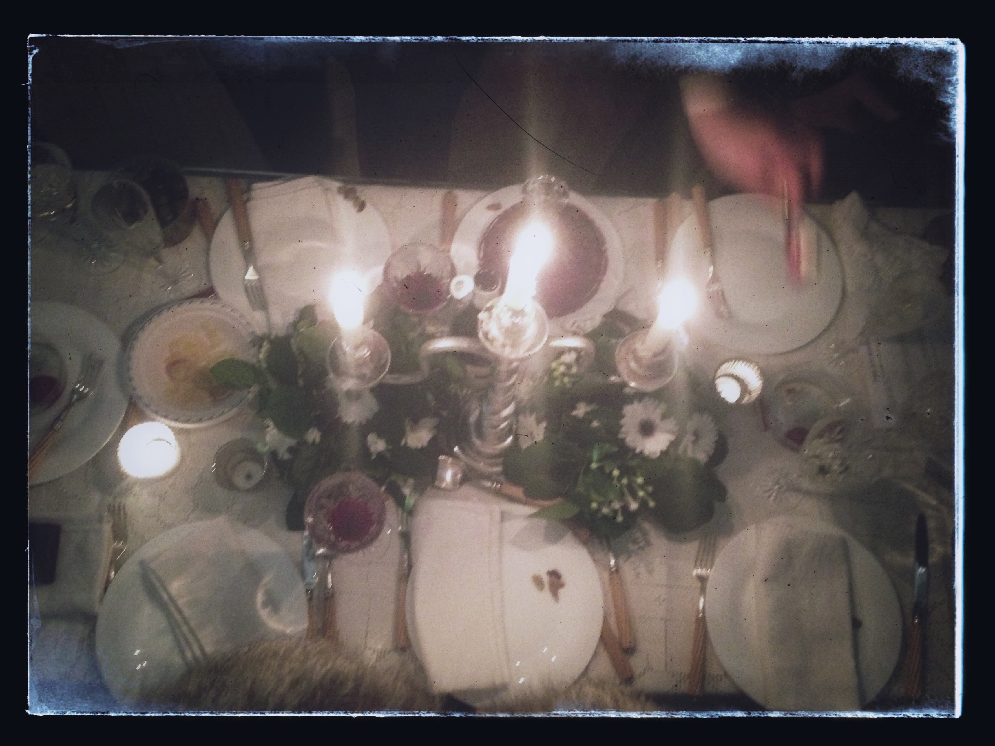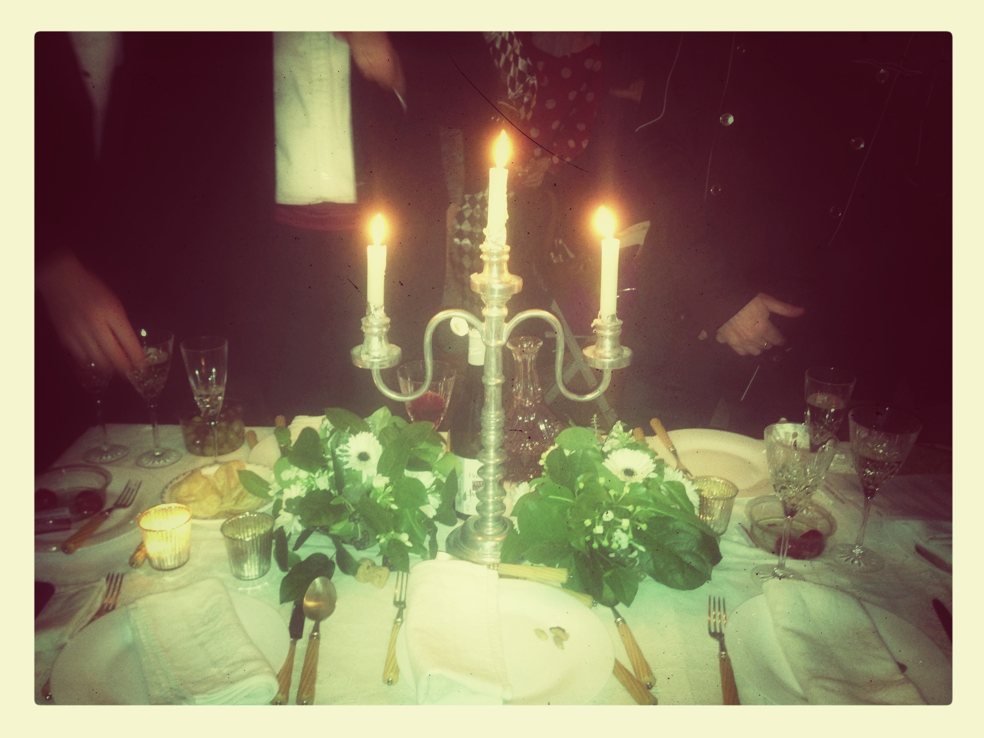 Our beautiful table complete with crystal glasses and decanters…very civilised.