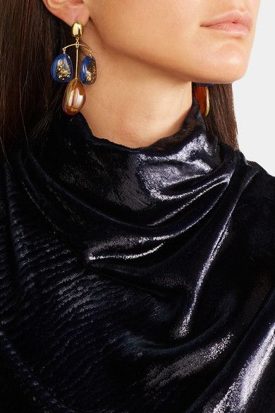 There’s a new style of earring on the block: A marbled resin reminiscent of murano glass with hints of a bygone era. Some of the best examples can be seen in the work of Ejing Zhang, a Chinese jewellery now living in London who looks to her love of traditional calligraphy and ink painting for her inspiration. Combine the ever changing powers of resin with gold and a touch of whimsy and you have a magical combination.