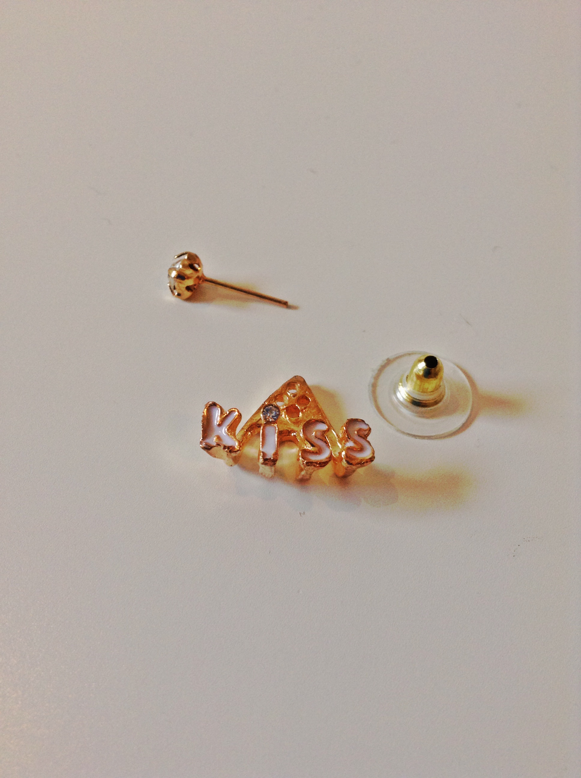 The ‘kiss’ part was from one pair, and the lips from another – the ‘kiss’ earring was a ridiculously clever design with the word being a separate part of the earring which then hung off the main stalk of the stud and looked cunningly suspended just below the earlobe. The design meant there’s this blue-sky-thinking ability to use ANY stud earring to hang the word from. Sadly ‘kiss’ is no longer available..but ‘love’ is (tempted?) The lips were then the perfect foil to the words, but at £3.94 precisely one had to worry about their quality (having said that – I never got an allergic reaction wearing them) and how long they’d last..but now there’s a rather wonderful solution..