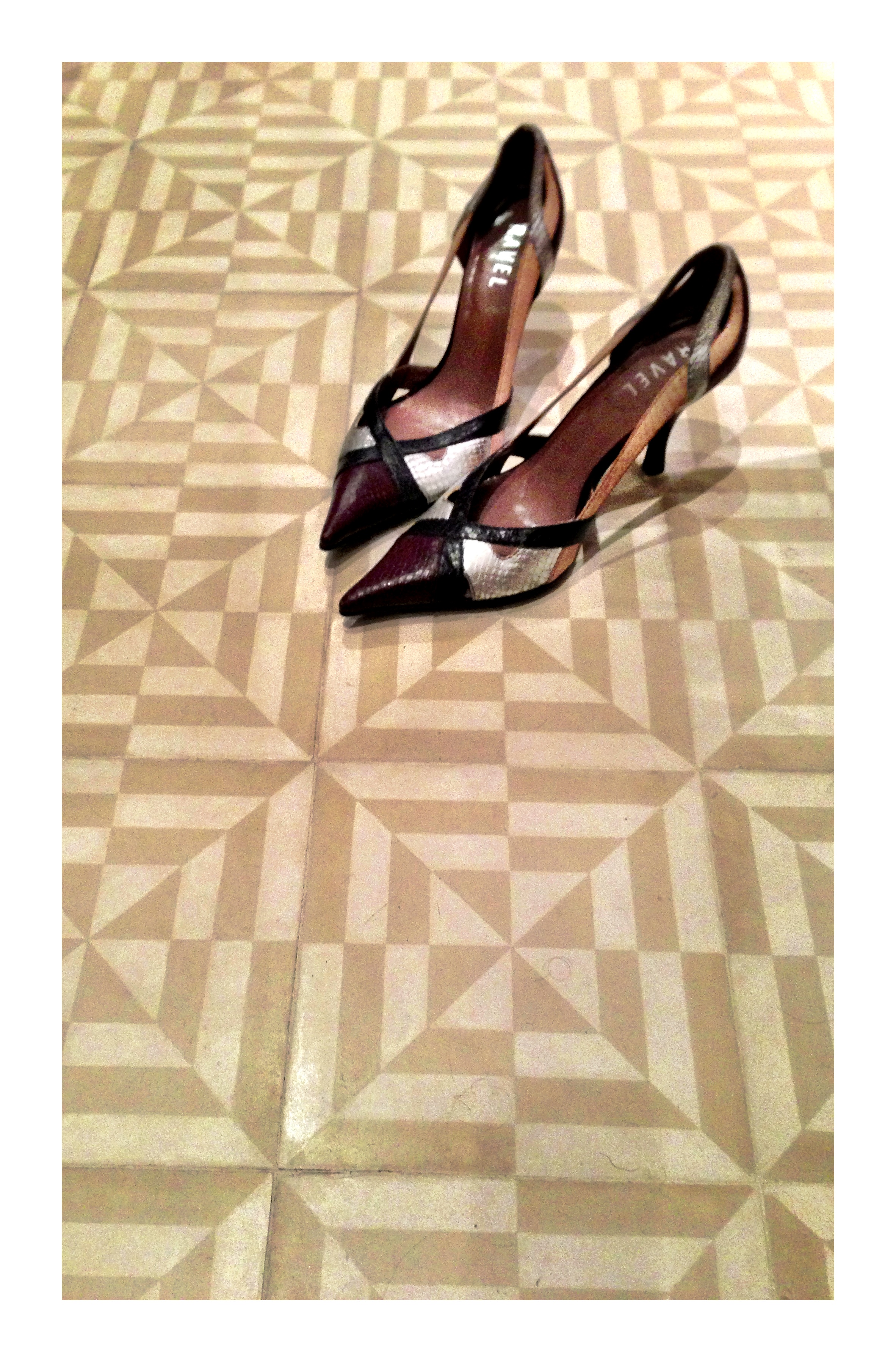 A well-aged parquet floor. Which got me thinking about marble chip floors…..except I never see them in this country…I looked down in Sainsburys..