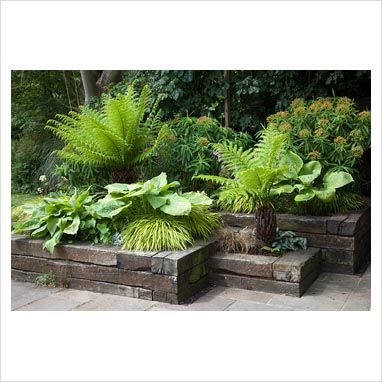 A brick wall would be fab. But expensive. So thoughts are currently leaning towards railway sleepers: Natural, dark and reasonable price bracket with the Brucie bonus of almost instant satisfaction.