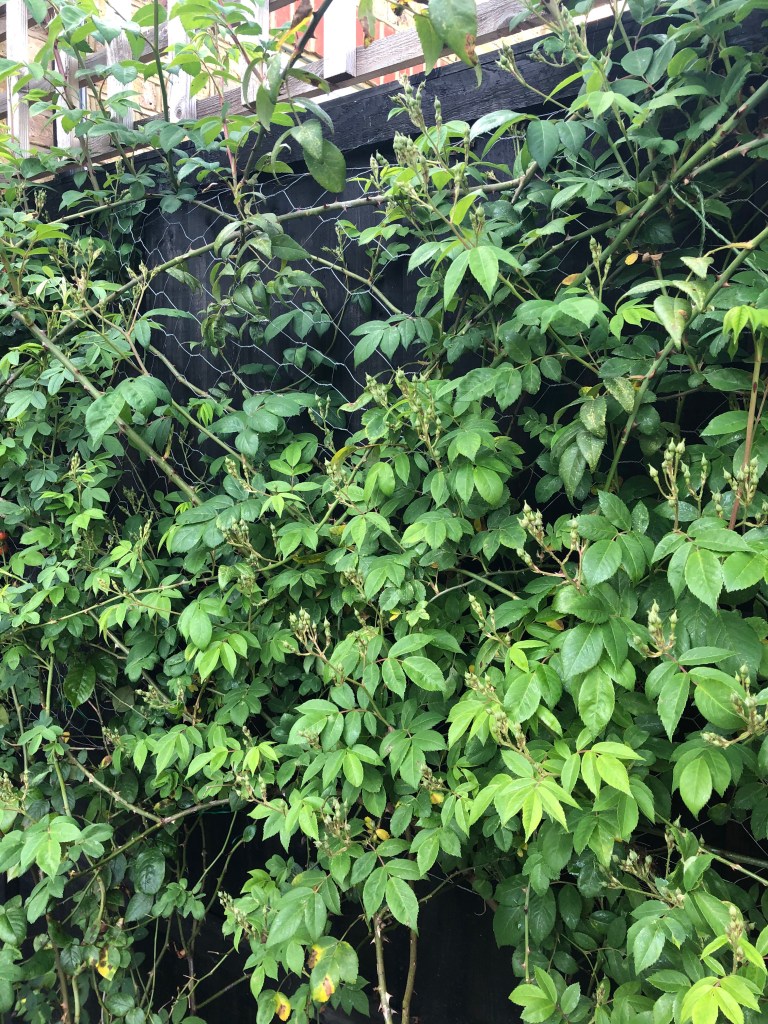 The good news is my climbing rose is chocka with an abundance of buds.