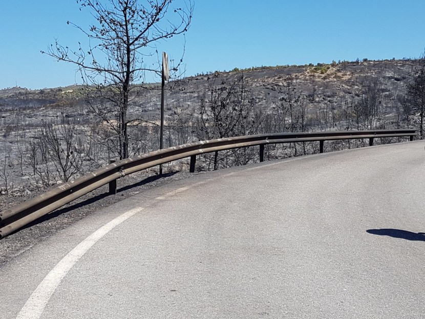 The fire broke out on Tuesday at noon at the forest near Aghii Anargyri, near the top of the island’s mountain, and headed west toward the beach before swinging south toward Xylokeriza. This is the same forest area that suffered from the 1990 wildfire. It has undergone extensive reforestation.
