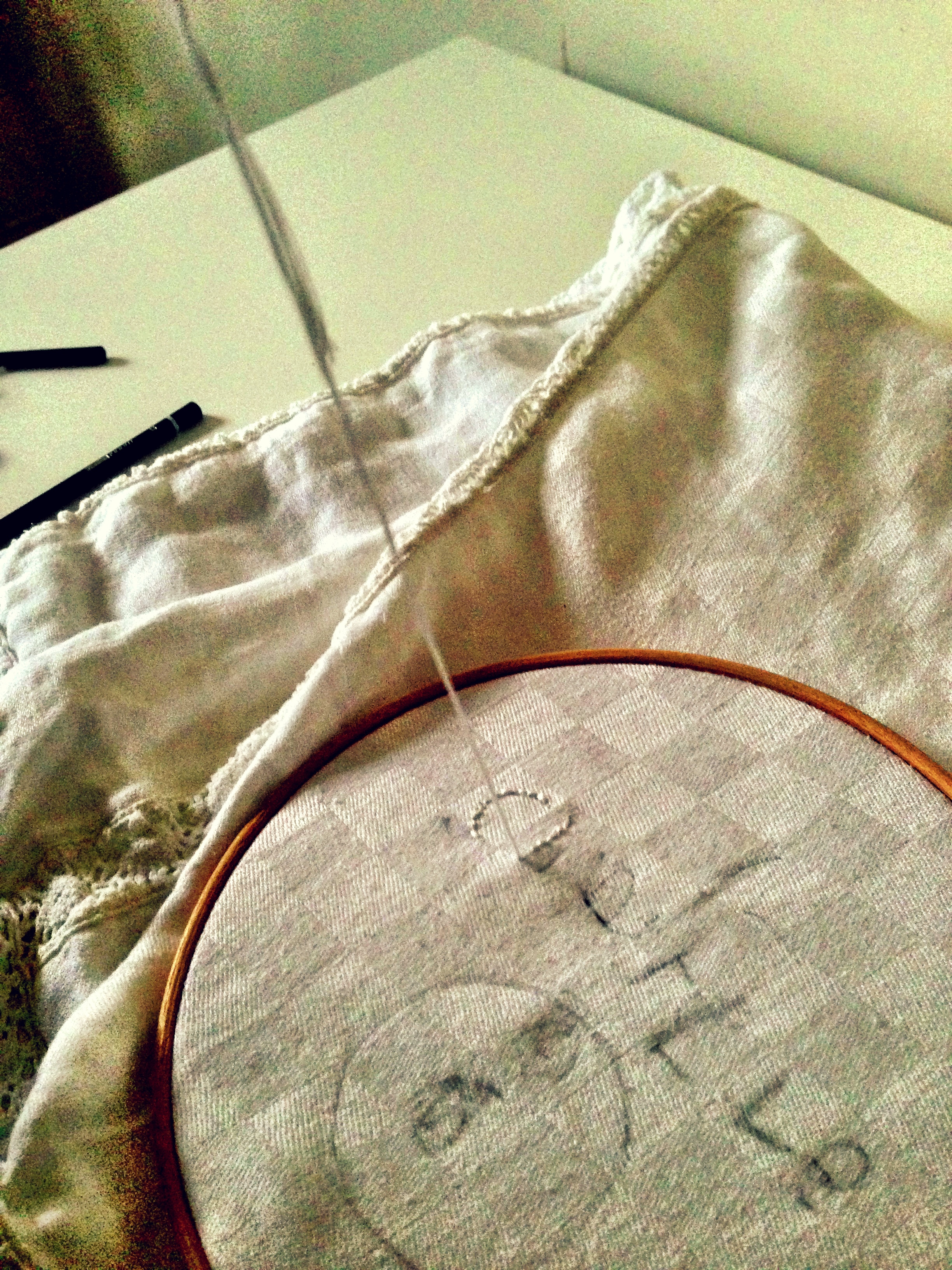 Charlie and I have also started on our Epiphany Tablecloth..an idea adapted from the lovely Kerry from Love Those Hands at Home (who also sells vintage linen at her etsy shop)…she re-blogged a special story about a family Christmas cloth, with little messages embroidered on every year by members of the family, of love, of happiness, of major events. I recognise my limitations and before Christmas is too much..but now? I want to reminisce about Christmas and year gone by, and I so appreciate these treasures created out of nothing but time and love till they have a magical, talismanic quality created by and just for the family.