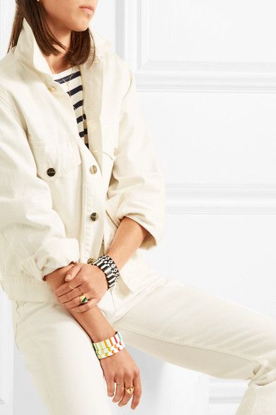 In the summer, in Greece, I hunt down the old fashioned souvenir shops that still sell the shell based surfer chokers of old for a few euros, then layer them up. A look akin to a mash up between a Masai warrior (is that cultural appropriation – or cultural celebration?) and a sun bleached beach bum. The jewellery of Roxanne Assoulin gives me the same joyful feeling – and for those still on the present hunt, the price point is a Christmas treat (£70 – £350) but not in the mortgage your left kidney and sell your soul to the devil bracket.