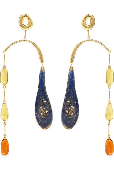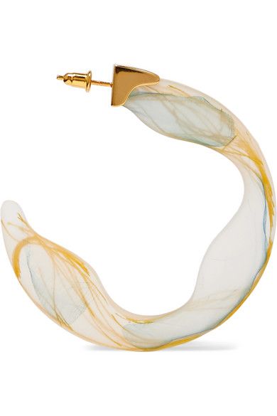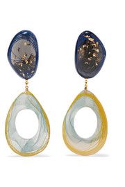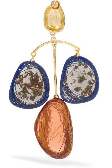 There’s a new style of earring on the block: A marbled resin reminiscent of murano glass with hints of a bygone era. Some of the best examples can be seen in the work of Ejing Zhang, a Chinese jewellery now living in London who looks to her love of traditional calligraphy and ink painting for her inspiration. Combine the ever changing powers of resin with gold and a touch of whimsy and you have a magical combination.