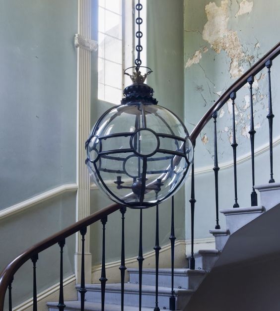This ornate number is in the hall. The idea is that the intricate ironwork relates to the black of the crittal glass doors arriving soon, but softens the harsher straight lines.
