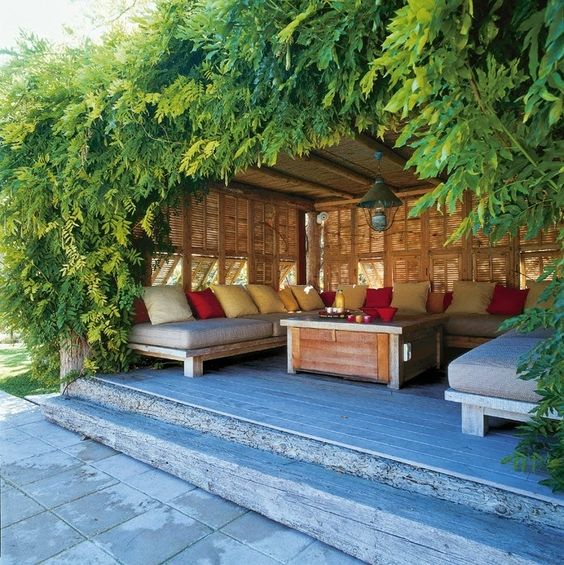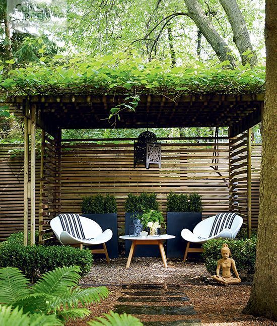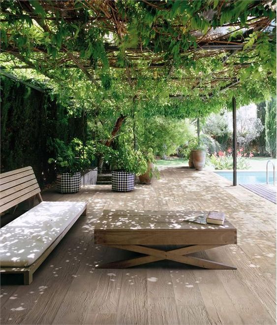 The plans for the office pod are rumbling on, but there’s also talk of making use of the builder when they’re here and turning the other far corner of the garden for a pergola-slash-gazebo. The thinking goes that in small London gardens we veer away from structures in the garden for fear they make a small garden look smaller, but the problem is in leaving a garden horizontal we rarely venture into it, preferring to gaze into from afar. So the aim is to build a private, roofed area that will still be useable in summer London drizzle to while away precious hours, whilst still keeping a sense of space and lightness of touch.