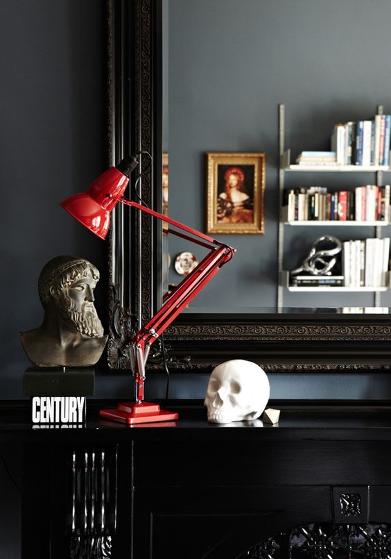 And of course there needs to be a bright splash of colour with a vintage desk lamp.