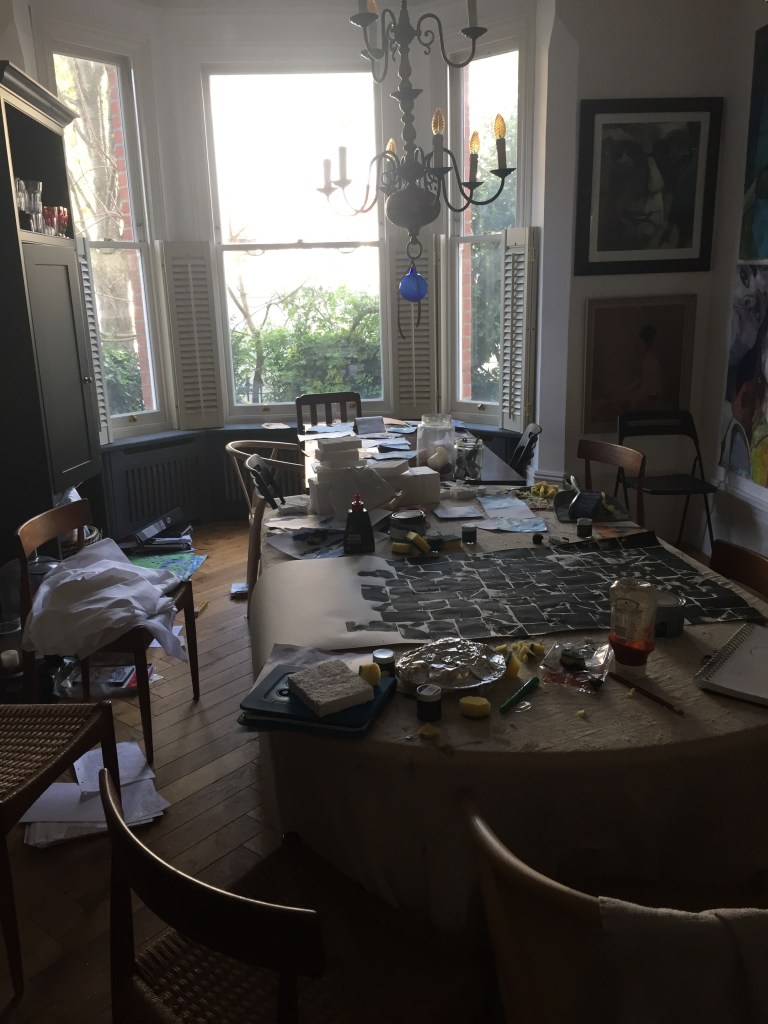 Despite just using the basics: Lining paper, leftover emulsion paint and cut up sponges – has worked a treat.