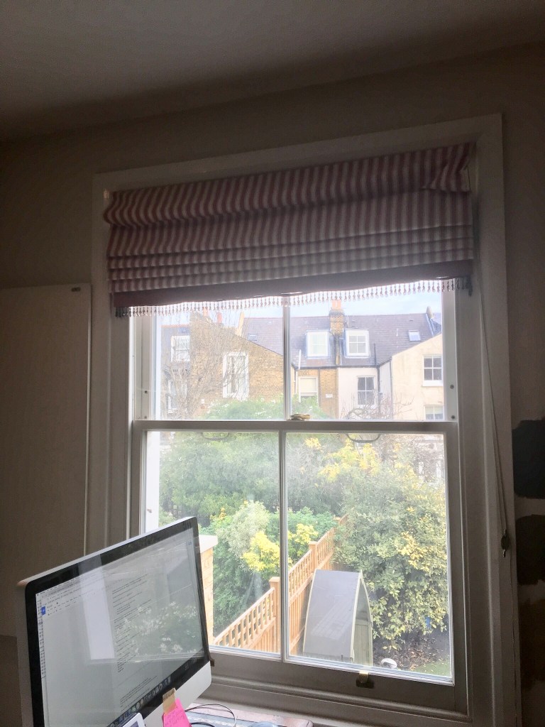 As the room is going to be painted darker, the window is having a subtle treatment – the blind is going upstairs to replace the one in Bella’s room and being replaced with a cream rollerblind (approx £46) which will be hidden in a pelmet box above the window, freeing up all the glass to maximum light. It means we will still be able to use the room as an extra spare room as and when, but the emphasis will be on the window and light rather than fussy dressings.